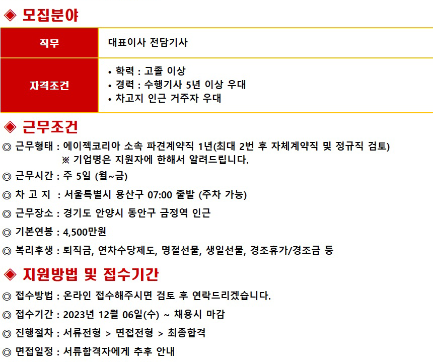 ±Ù¹«ÇüÅ : ¿¡ÀÌÁ§ÄÚ¸®¾Æ ¼Ò¼Ó ÆÄ°ß°è¾àÁ÷ 1³â(ÃÖ´ë 2¹ø ÈÄ ÀÚü°è¾àÁ÷ ¹× Á¤±ÔÁ÷ °ËÅä)