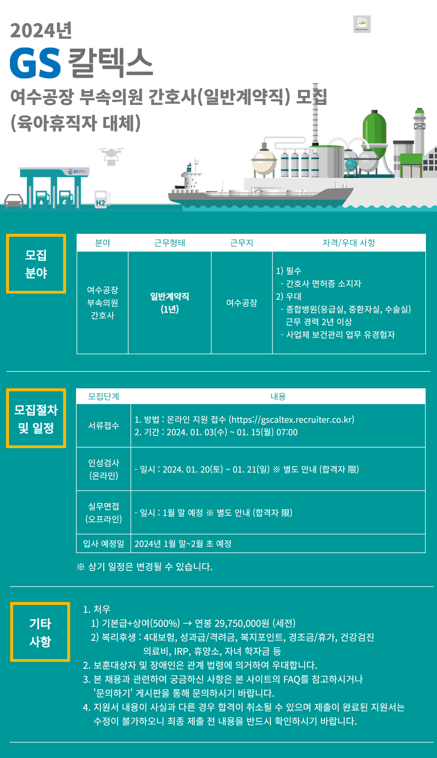 2024³â GSĮŨ½º ¿©¼ö°øÀå ºÎ¼ÓÀÇ¿ø °£È£»ç(ÀϹݰè¾àÁ÷) ¸ðÁý (À°¾ÆÈÞÁ÷ÀÚ ´ëü)