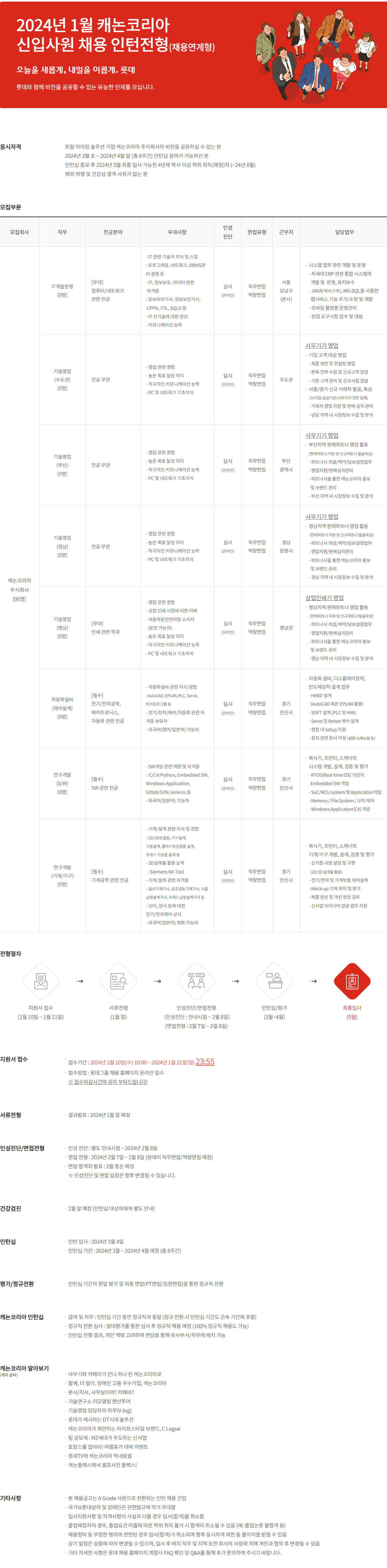 2024³â 1¿ù ij³íÄÚ¸®¾Æ ½ÅÀÔ»ç¿ø ä¿ë ÀÎÅÏÀüÇü(ä¿ë¿¬°èÇü)