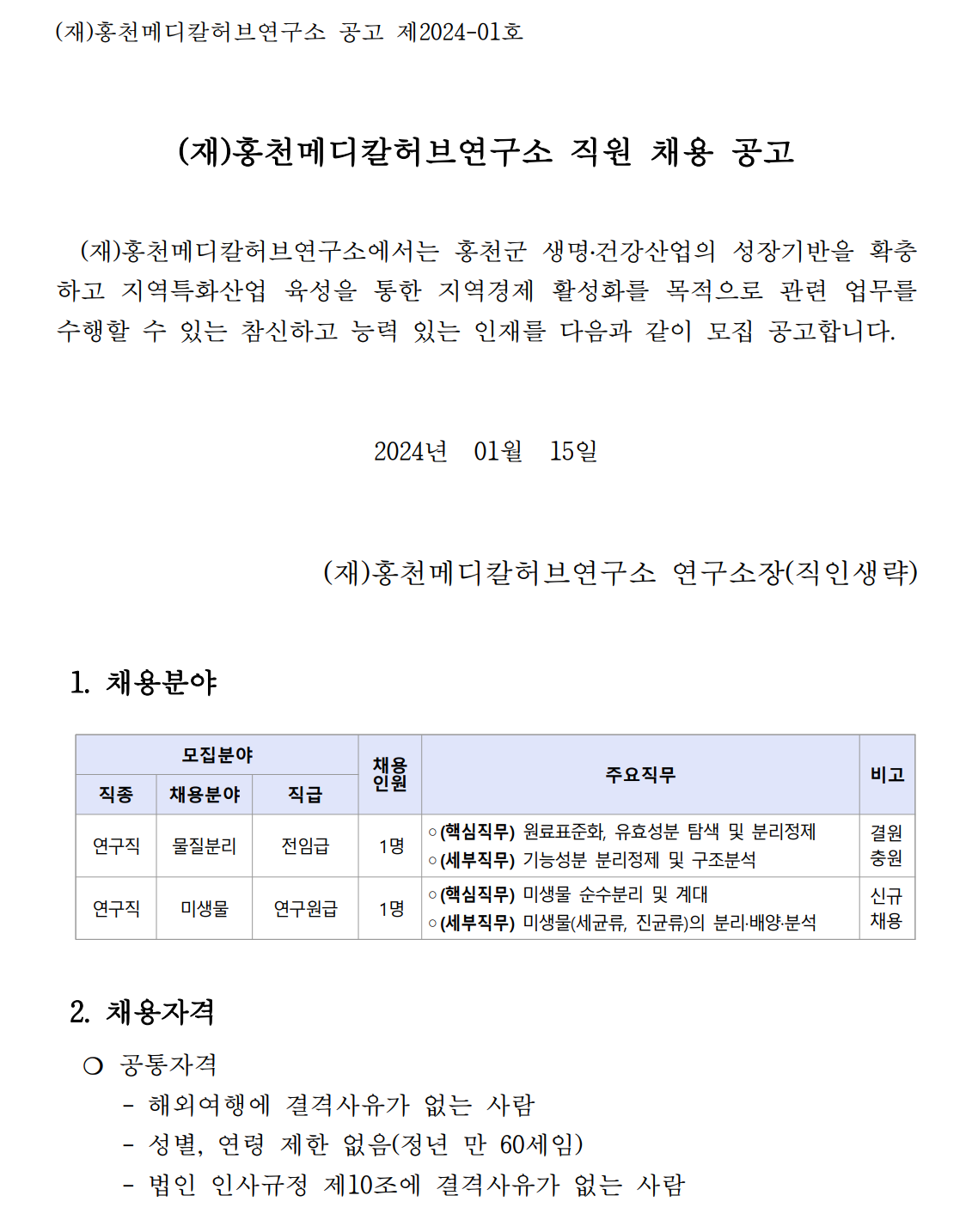 [Á¦2024-01È£] ȫõ¸ÞµðÄ®Çãºê¿¬±¸¼Ò Á÷¿ø ºí¶óÀεå ä¿ë °ø°í(¿¬±¸Á÷)