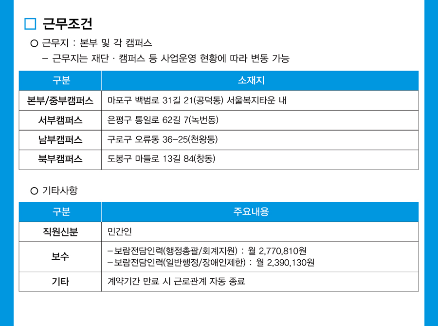 - ±Ù¹«Áö´Â Àç´Ü Ä·ÆÛ½º µî »ç¾÷¿î¿µ ÇöȲ¿¡ µû¶ó º¯µ¿ °¡´É