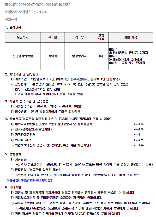 3) º»¿ø ÀÔ»ç ¿¹Á¤ÀÏ: 2024.03.14(¸ñ) ÀüÈÄ