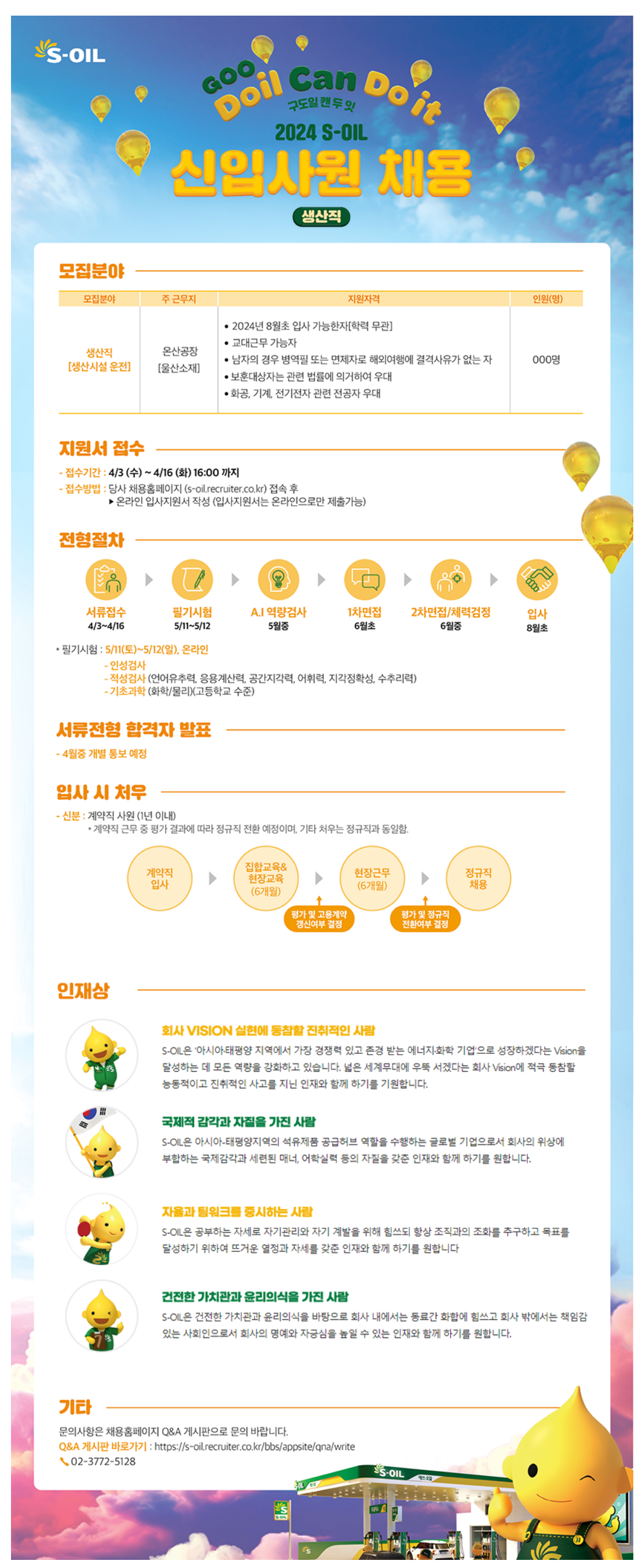 2024³â S-OIL »ý»êÁ÷ ½ÅÀÔ»ç¿ø ¸ðÁý