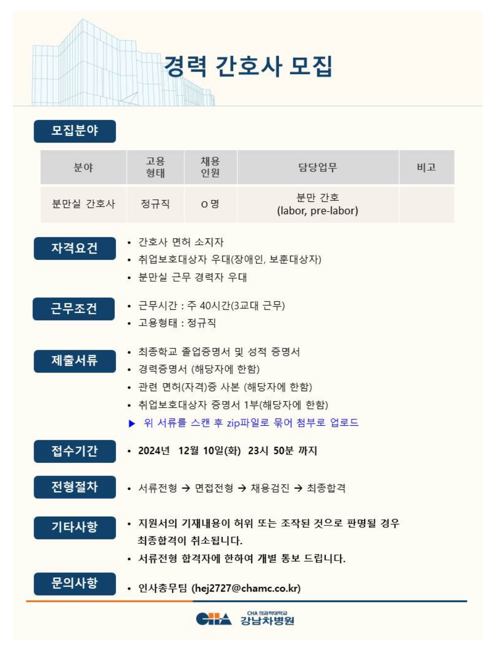 [°³²Â÷º´¿ø] °³²Â÷º´¿ø °æ·Â°£È£»ç(ºÐ¸¸½Ç) ¸ðÁý