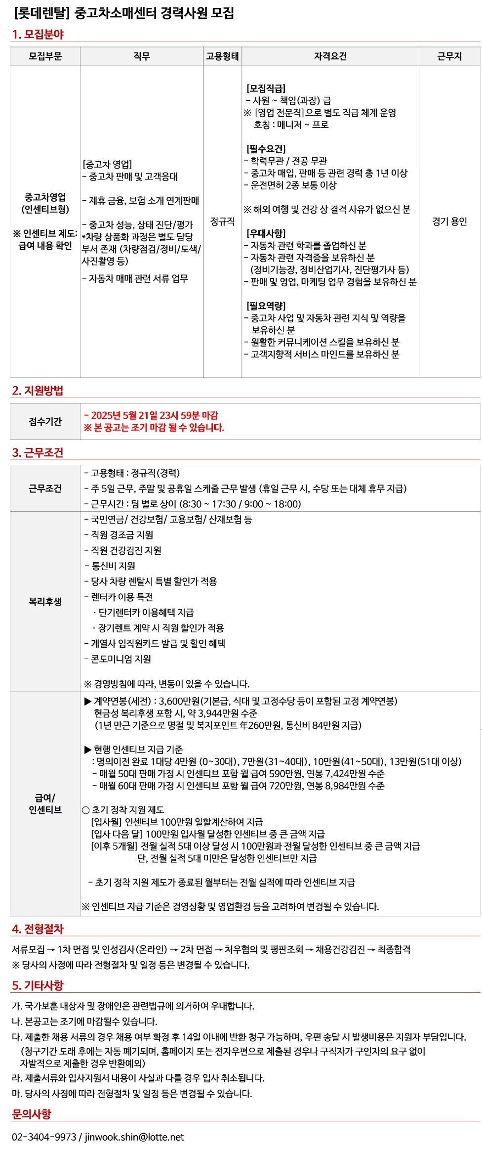 25³â 5¿ù Á¤±ÔÁ÷(°æ·Â) - Áß°íÂ÷¿µ¾÷(Àμ¾Æ¼ºêÇü, ¿ëÀÎ)