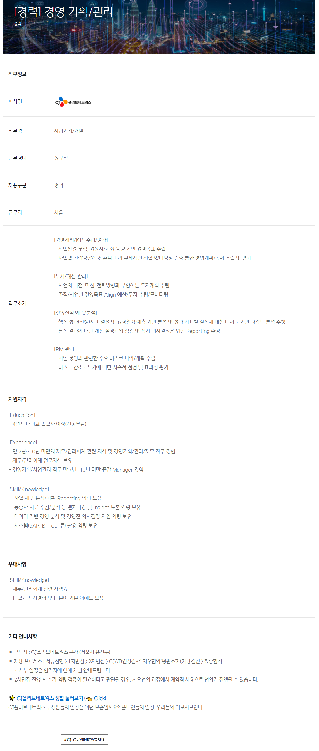 ◼ ±Ù¹«Áö : CJ¿Ã¸®ºê³×Æ®¿÷½º º»»ç (¼¿ï½Ã ¿ë»ê±¸)