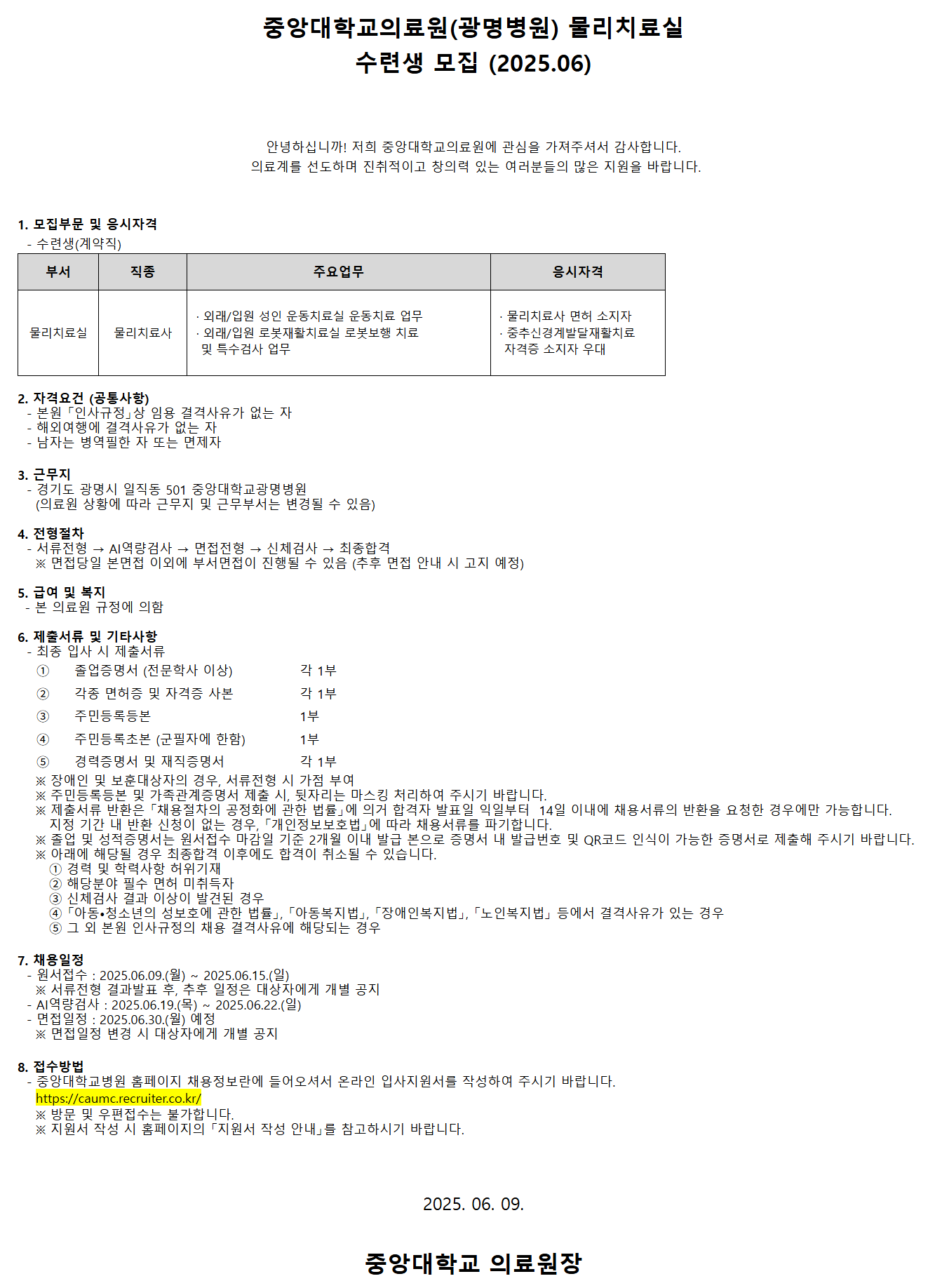 - Áß¾Ó´ëÇб³º´¿ø ȨÆäÀÌÁö ä¿ëÁ¤º¸¶õ¿¡ µé¾î¿À¼Å¼ ¿Â¶óÀÎ ÀÔ»çÁö¿ø¼¸¦ ÀÛ¼ºÇÏ¿© Áֽñ⠹ٶø´Ï´Ù.