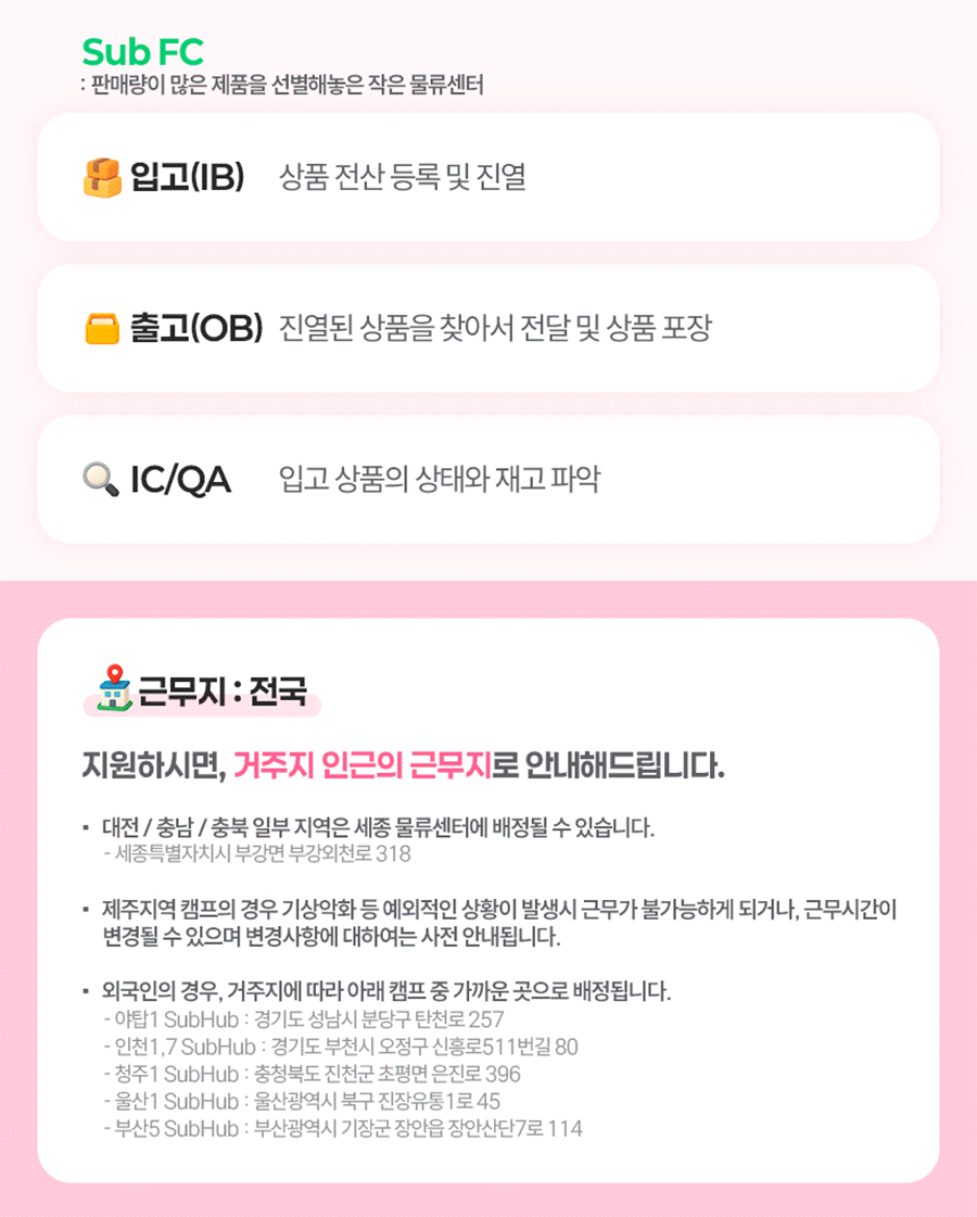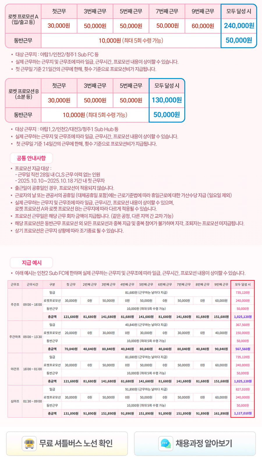 ¡¤ ¾Æ·¡ ¿¹½Ã´Â ÀÎõ2 Sub FC¿¡ ÇÑÇÏ¸ç ½ÇÁ¦ ±Ù¹«ÇÏ´Â ±Ù¹«Áö ¹× ±Ù¹«Á¶¿¡ µû¶ó ÀϱÞ, ±Ù¹«½Ã°£, ÇÁ·Î¸ð¼Ç ³»¿ëÀÌ »óÀÌÇÒ ¼ö ÀÖ½À´Ï´Ù.