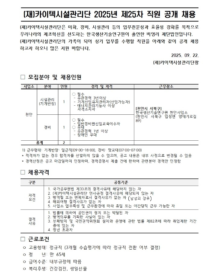 (Àç)Ä«ÀÌÅØ½Ã¼³°ü¸®´Ü 2025³â Á¦25Â÷ Á÷¿ø °ø°³Ã¤¿ë