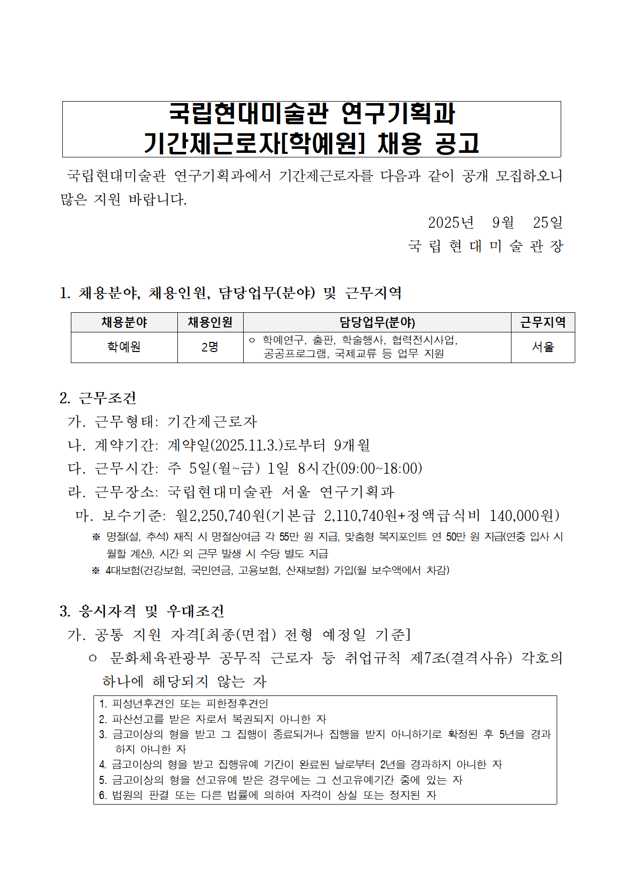 ±¹¸³Çö´ë¹Ì¼ú°ü ¿¬±¸±âȹ°ú ±â°£Á¦±Ù·ÎÀÚ[Çп¹¿ø] ä¿ë °ø°í