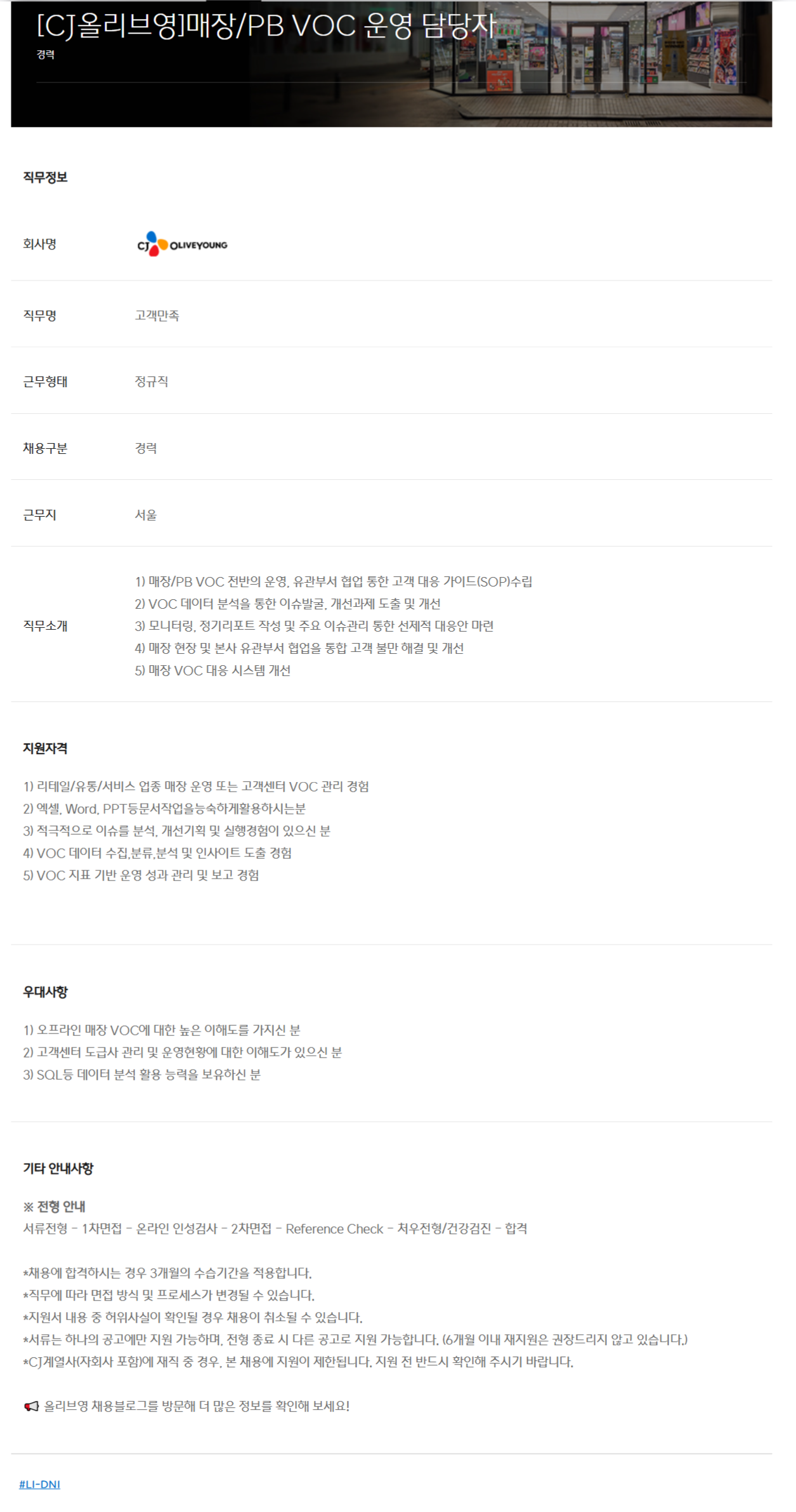 [CJ¿Ã¸®ºê¿µ]¸ÅÀå/PB VOC ¿î¿µ ´ã´çÀÚ