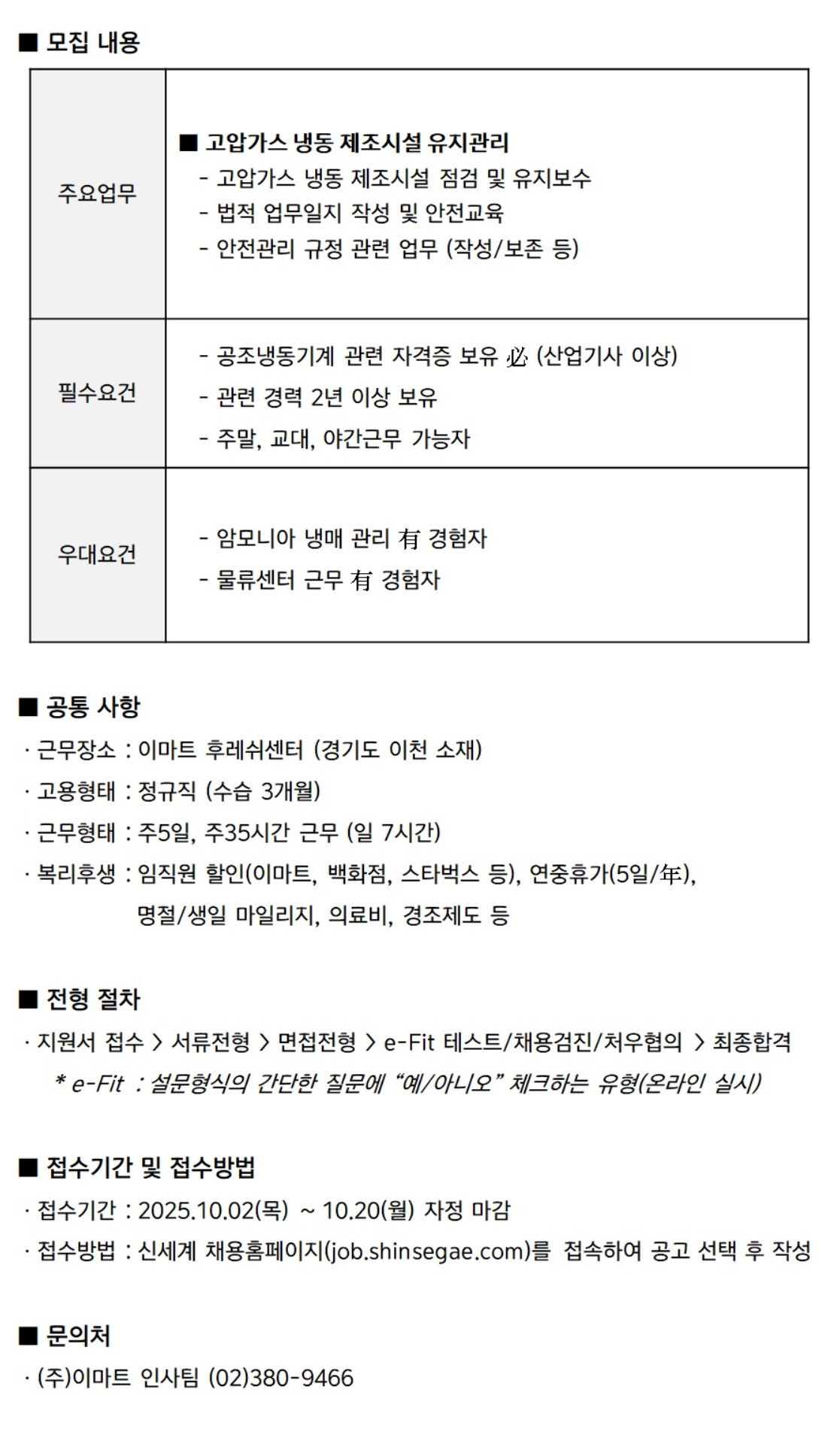 (ÁÖ)À̸¶Æ® ÈÄ·¹½¬¼¾ÅÍ ³Ãµ¿¼³ºñ¡¤°í¾Ð°¡½º ¾ÈÀü°ü¸®ÀÚ ¸ðÁý