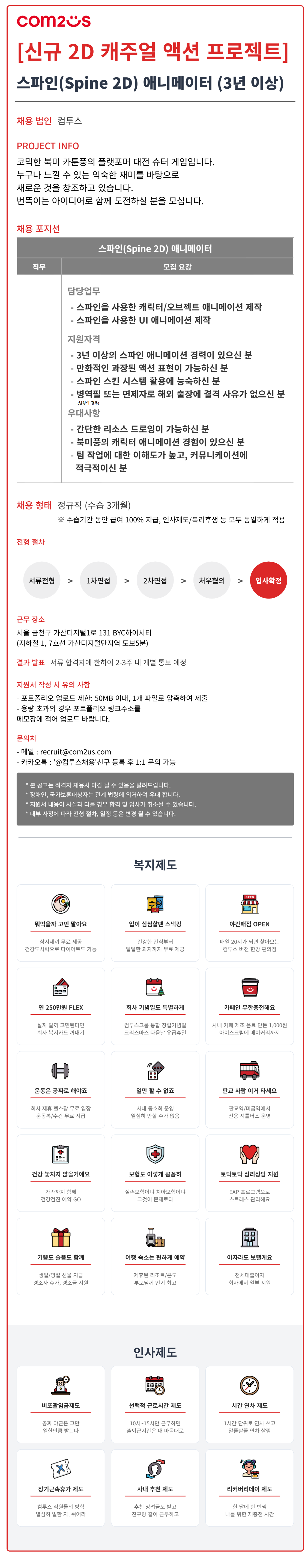 [½Å±Ô 2D ijÁÖ¾ó ¾×¼Ç ÇÁ·ÎÁ§Æ®] ½ºÆÄÀÎ(Spine 2D) ¾Ö´Ï¸ÞÀÌÅÍ (3³â ÀÌ»ó)