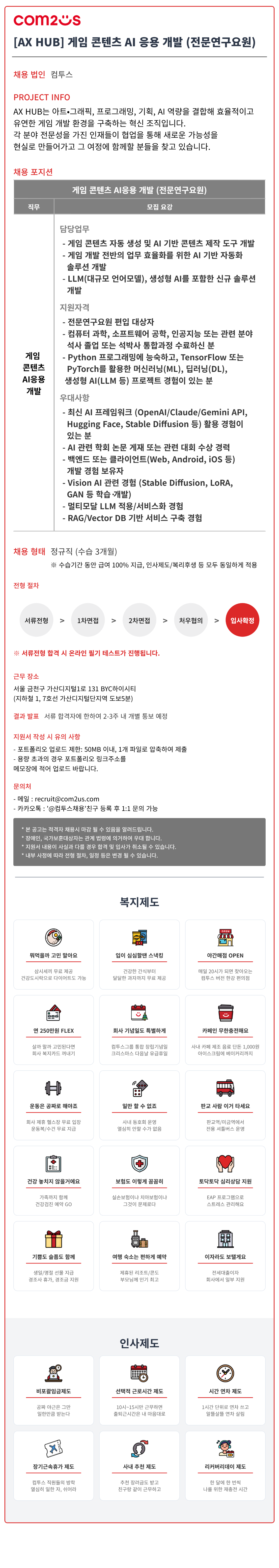 [AX HUB] °ÔÀÓ ÄÜÅÙÃ÷ AI ÀÀ¿ë °³¹ß (Àü¹®¿¬±¸¿ä¿ø)