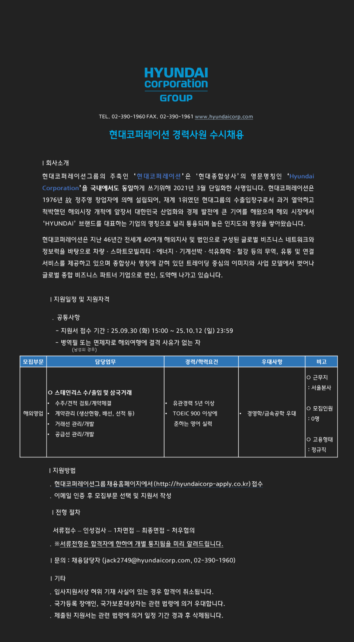 [Çö´ëÄÚÆÛ·¹À̼Ç] ½ºÅ×Àη¹½º ö° ÇØ¿Ü¿µ¾÷ °æ·ÂÁ÷ ä¿ë