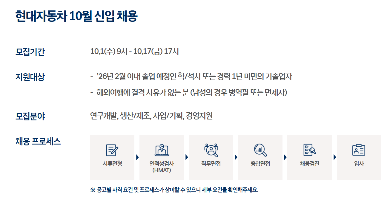 Çö´ëÀÚµ¿Â÷ 10¿ù ½ÅÀÔ Ã¤¿ë