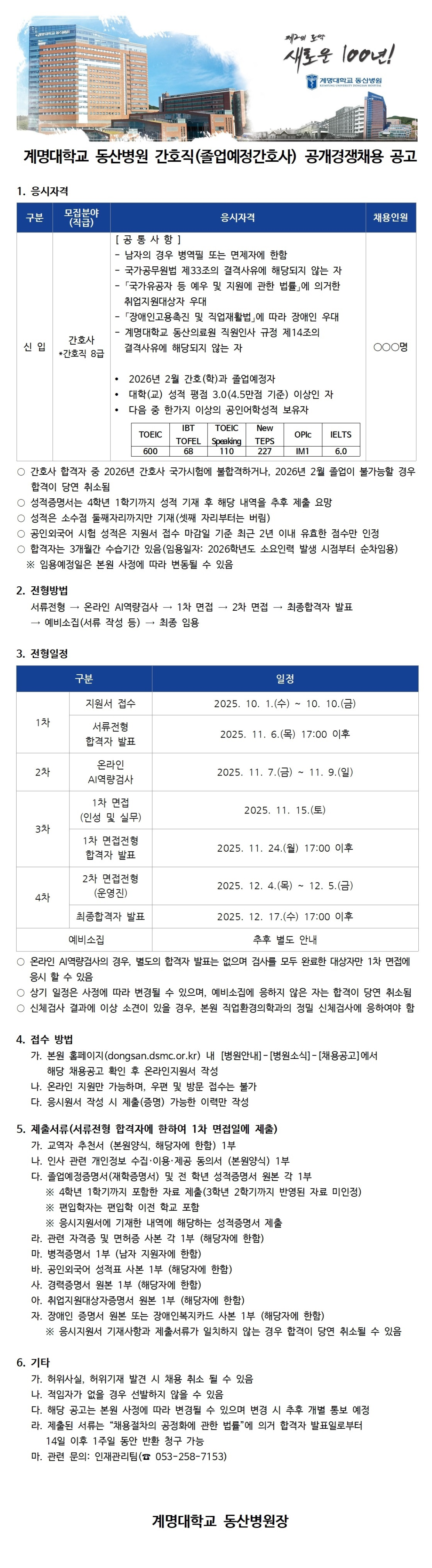 °è¸í´ëÇб³ µ¿»êº´¿ø °£È£Á÷(Á¹¾÷¿¹Á¤°£È£»ç) °ø°³°æÀïä¿ë °ø°í