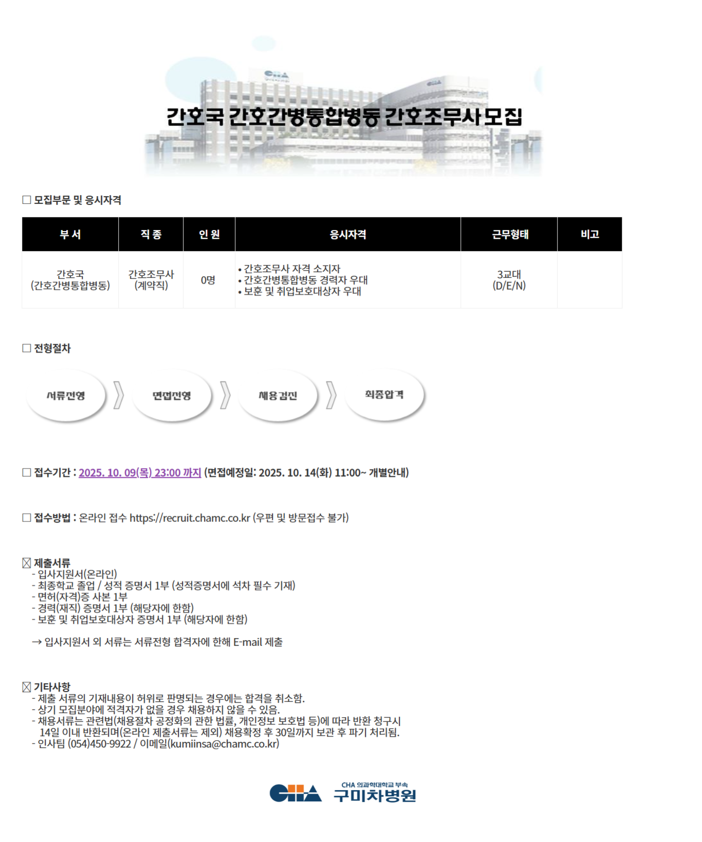 [±¸¹ÌÂ÷º´¿ø] °£È£°£º´ÅëÇÕº´µ¿ °£È£Á¶¹«»ç ¸ðÁý(°è¾àÁ÷)