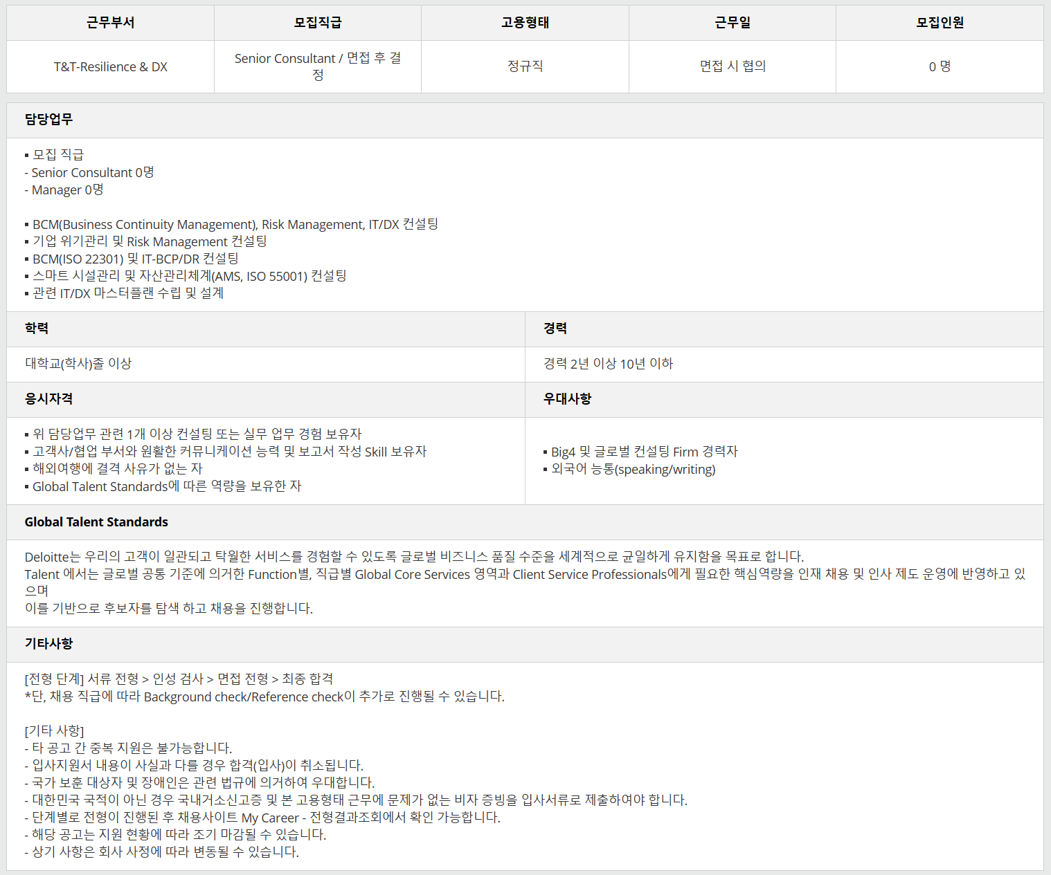 T&T-Resilience & DX Senior Consultant / ¸éÁ¢ ÈÄ °áÁ¤ Á¤±ÔÁ÷ ¸éÁ¢ ½Ã ÇùÀÇ 0 ¸í
