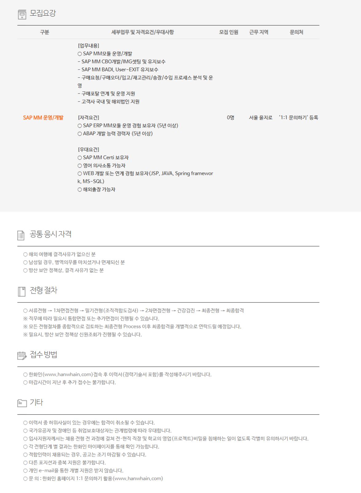 SAP MM ¿î¿µ/°³¹ß °æ·Â»ç¿ø ä¿ë