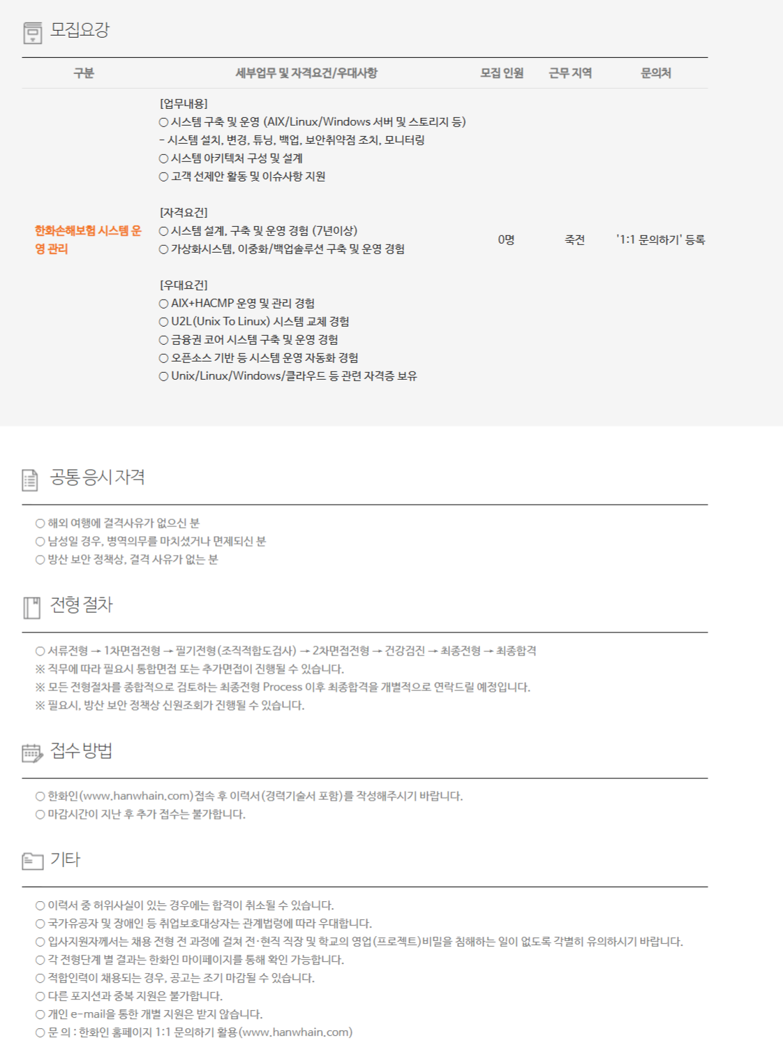 ÇÑȼÕÇØº¸Çè ½Ã½ºÅÛ ¿î¿µ °ü¸® °æ·Â»ç¿ø ä¿ë