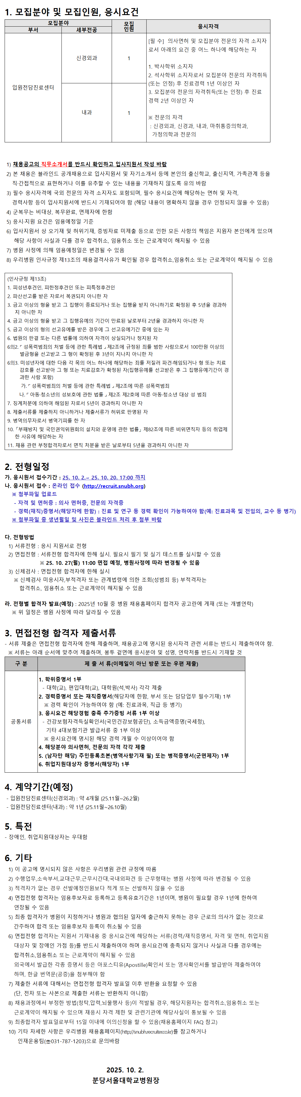 ¶ó. ÀüÇüº° ÇÕ°ÝÀÚ ¹ßÇ¥(¿¹Á¤) : 2025³â 10¿ù Áß º´¿ø ä¿ëȨÆäÀÌÁö ÇÕ°ÝÀÚ °ø°í¶õ¿¡ °ÔÀç (¶Ç´Â °³º°¿¬¶ô)