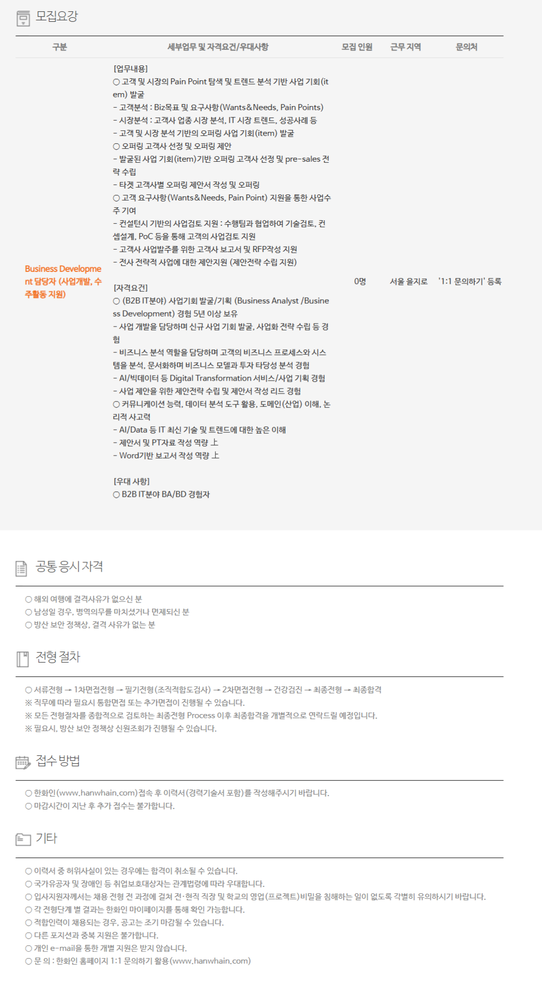 ¡Û B2B ITºÐ¾ß BA/BD °æÇèÀÚ 0¸í ¼¿ï À»Áö·Î '1:1 ¹®ÀÇÇϱâ' µî·Ï