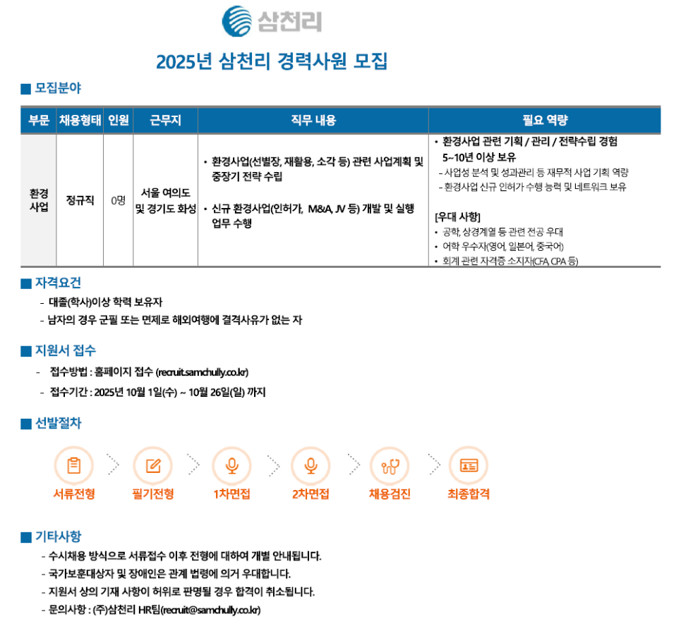 2025³â »ïõ¸® ȯ°æ »ç¾÷ºÎ¹® °æ·Â»ç¿ø ¸ðÁý