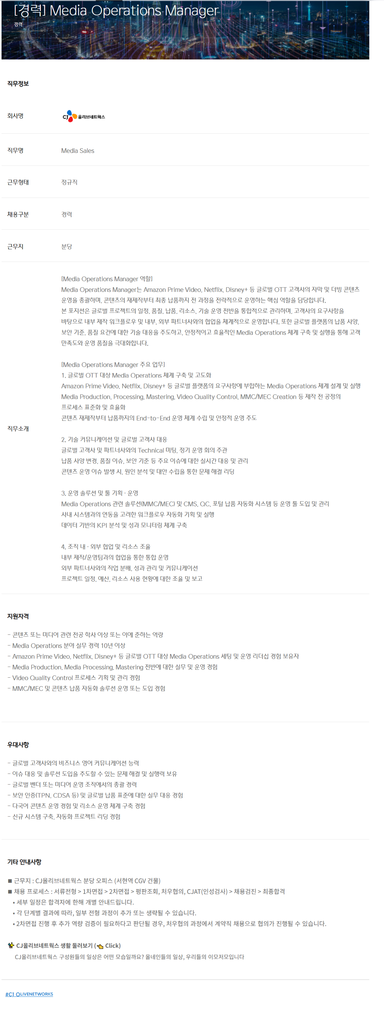 [Media Operations Manager ÁÖ¿ä ¾÷¹«]