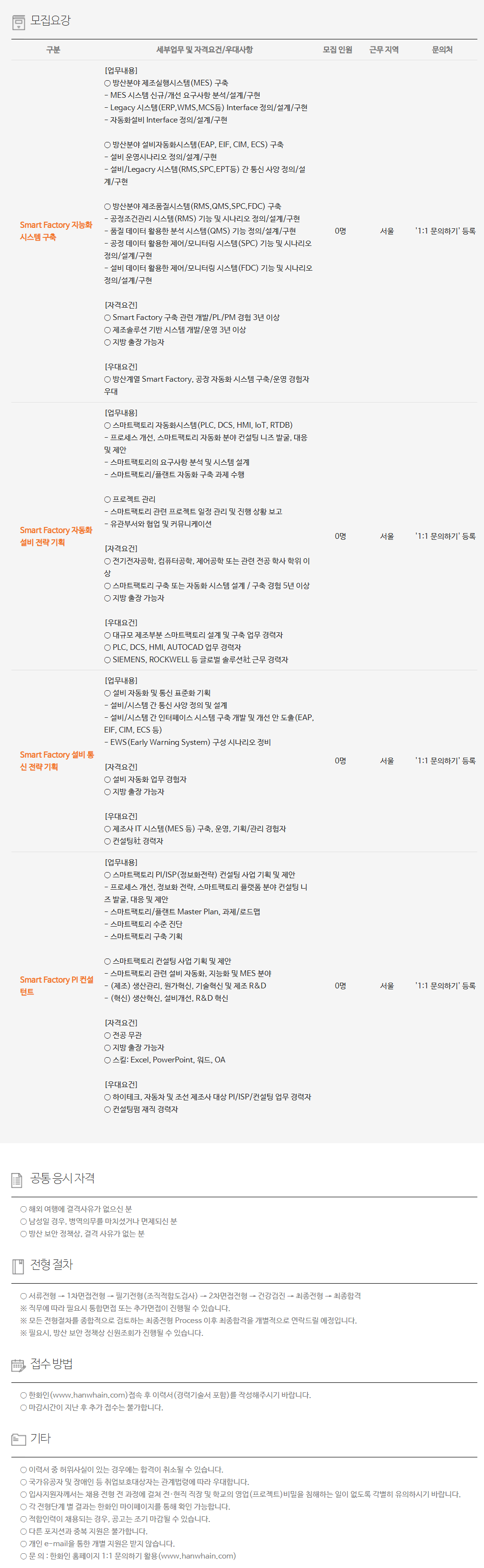 ¡Û ¹æ»ê°è¿ Smart Factory, °øÀå ÀÚµ¿È ½Ã½ºÅÛ ±¸Ãà/¿î¿µ °æÇèÀÚ ¿ì´ë 0¸í ¼¿ï '1:1 ¹®ÀÇÇϱâ' µî·Ï