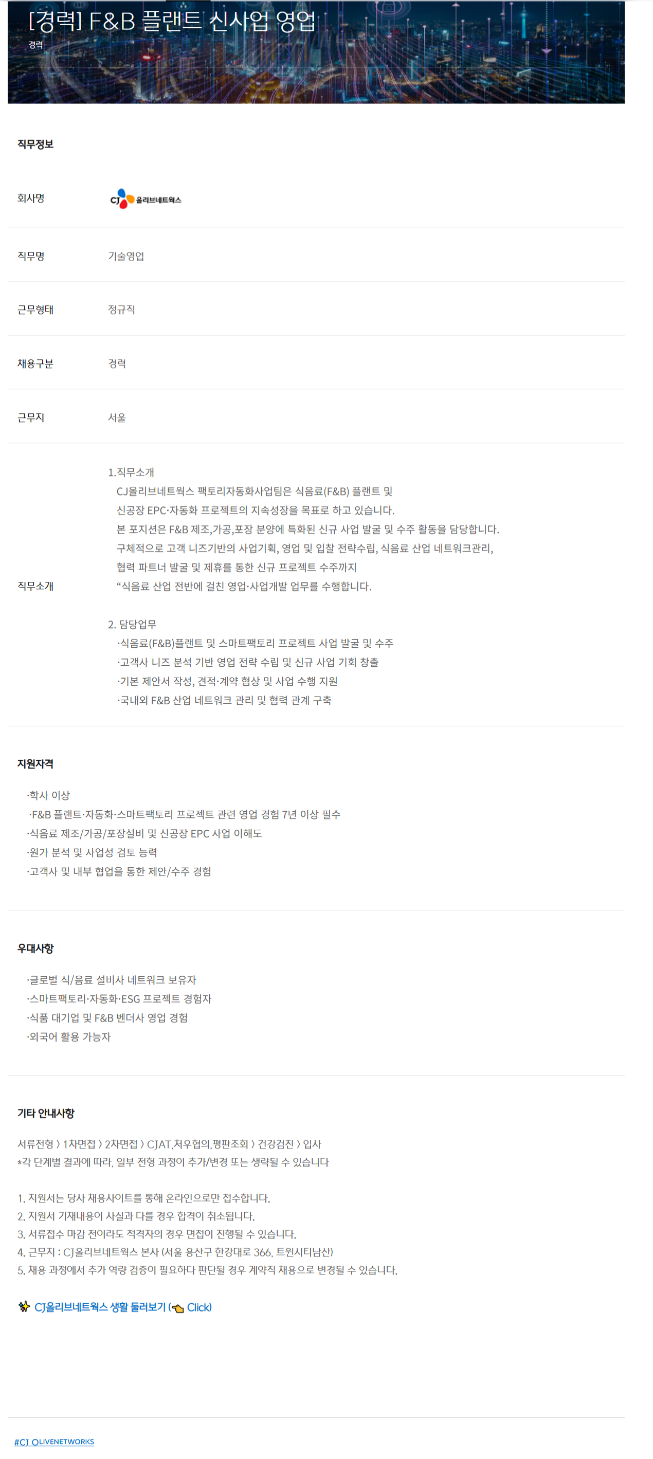CJ¿Ã¸®ºê³×Æ®¿÷½º ÆÑÅ丮ÀÚµ¿È»ç¾÷ÆÀÀº ½ÄÀ½·á(F&B) Ç÷£Æ® ¹×