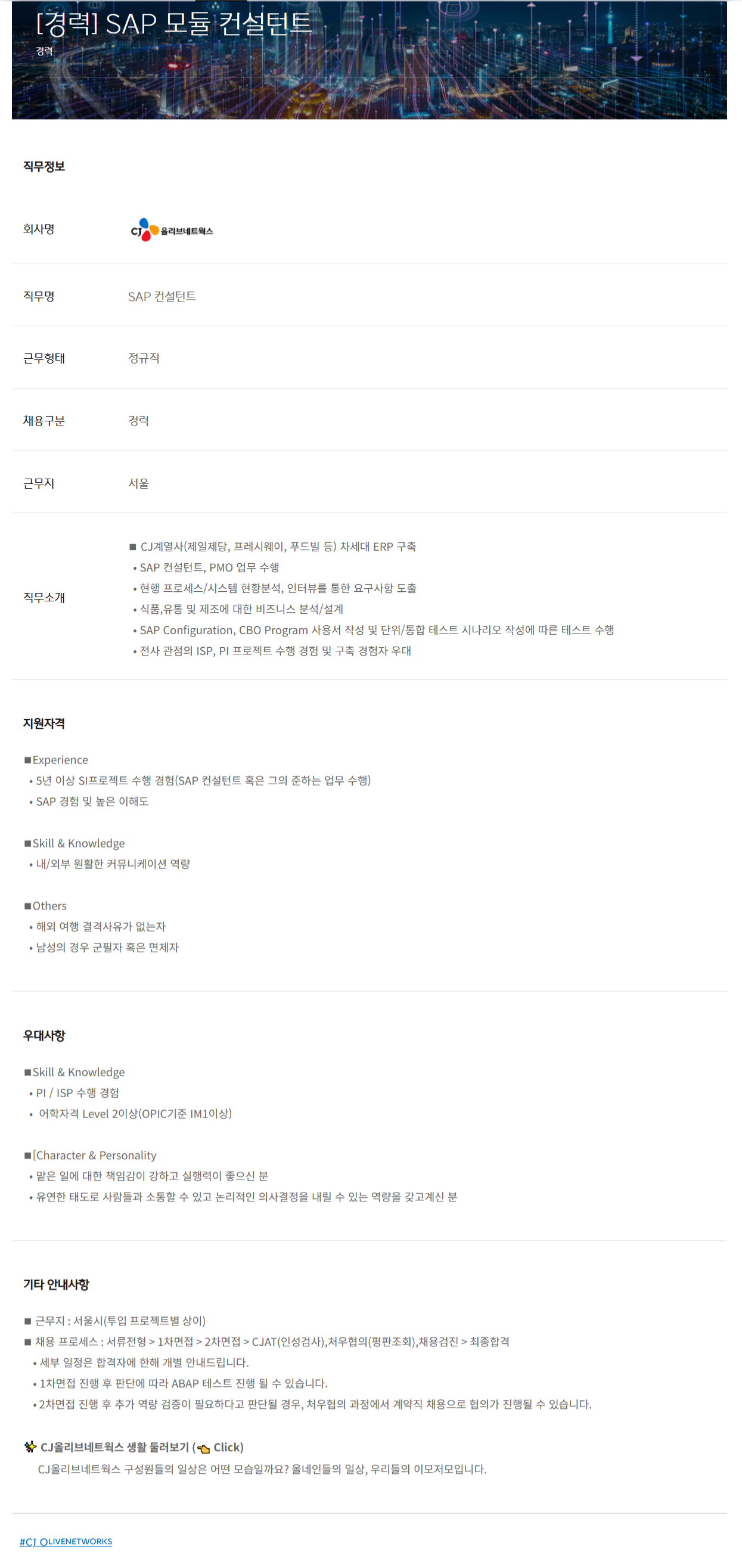 • 5³â ÀÌ»ó SIÇÁ·ÎÁ§Æ® ¼öÇà °æÇè(SAP ÄÁ¼³ÅÏÆ® ȤÀº ±×ÀÇ ÁØÇÏ´Â ¾÷¹« ¼öÇà)