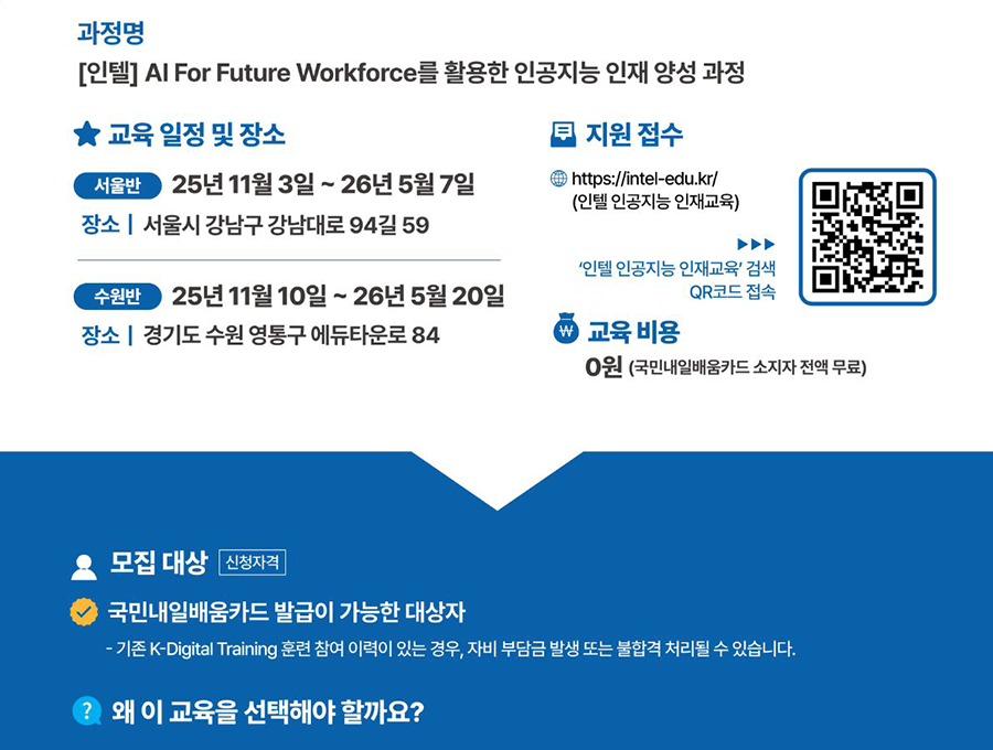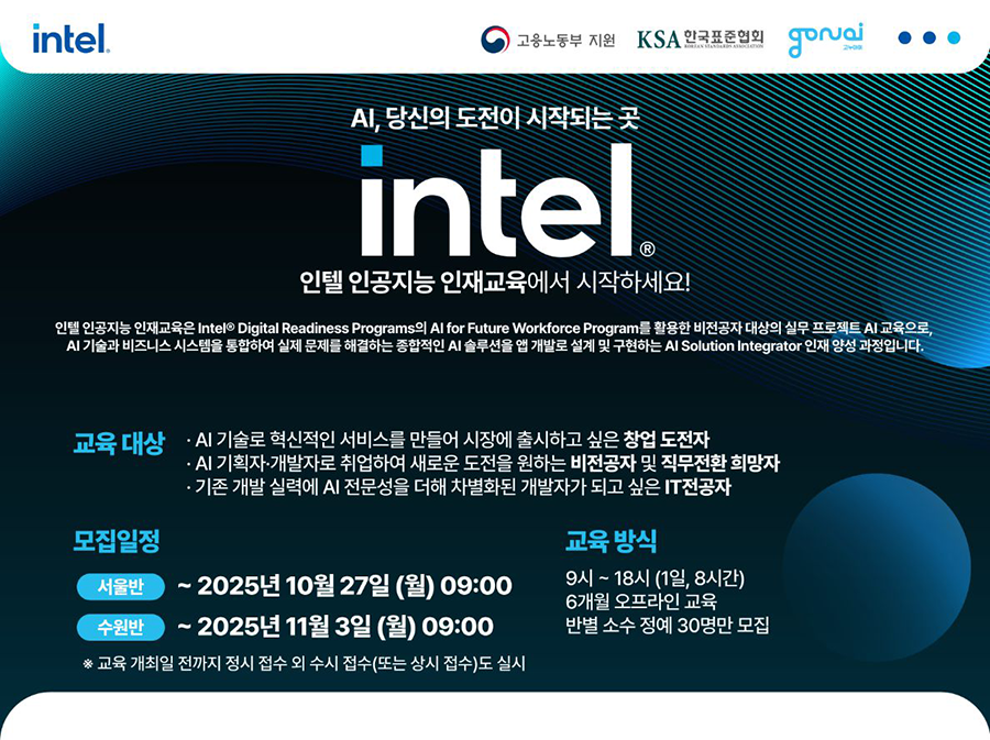 ¼¿ï¹Ý 25³â 11¿ù 3ÀÏ ~ 26³â 5¿ù 7ÀÏ https://intel-edu.kr/