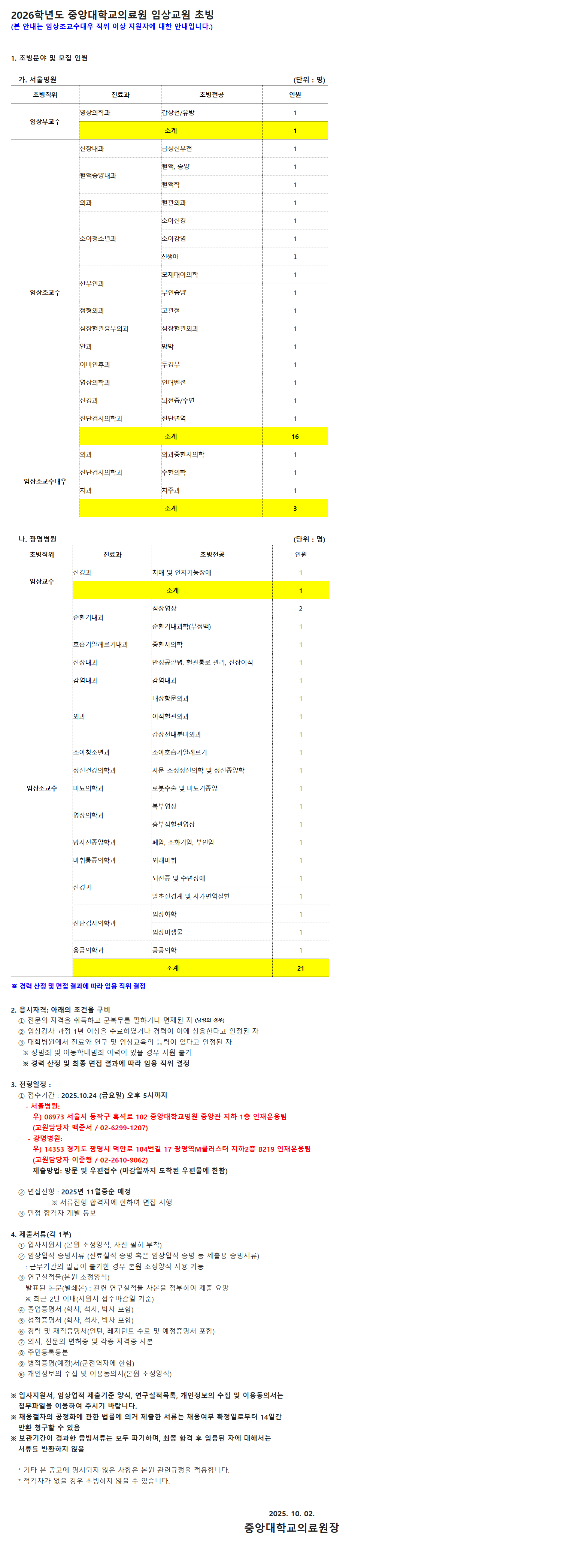 2026Çг⵵ Áß¾Ó´ëÇб³ÀÇ·á¿ø Àӻ󱳿ø Ãʺù