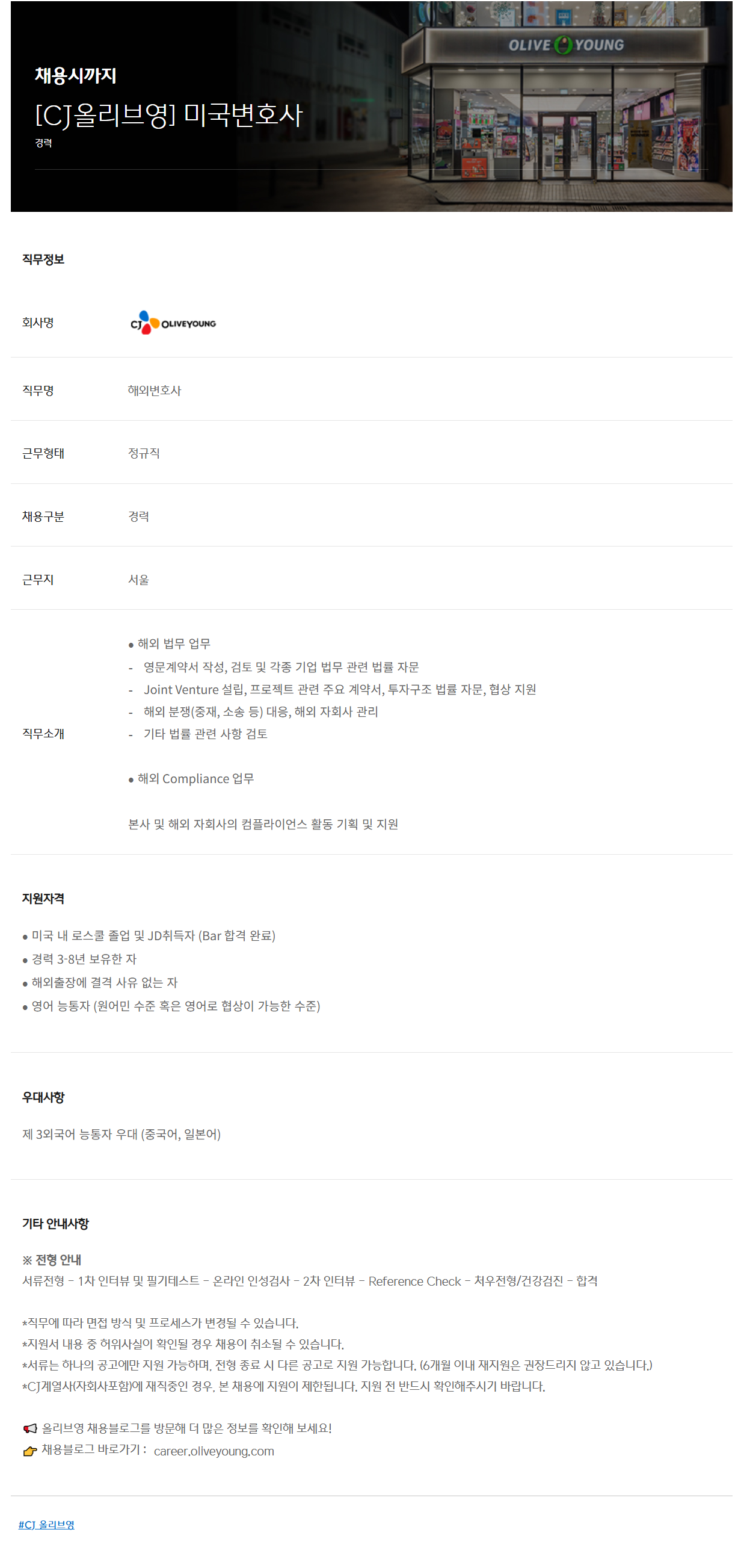 👉 ä¿ëºí·Î±× ¹Ù·Î°¡±â : career.oliveyoung.com