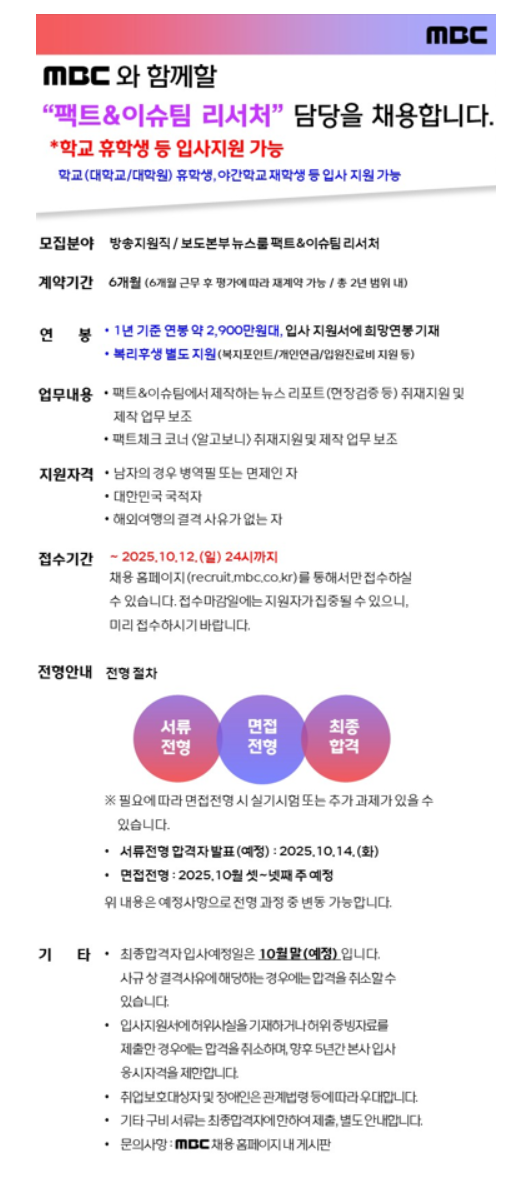 MBC ÆÑÆ®&À̽´ÆÀ ¸®¼Ã³ ¸ðÁý(´ëÇб³ ÈÞÇлý µî ÀÔ»çÁö¿ø °¡´É)
