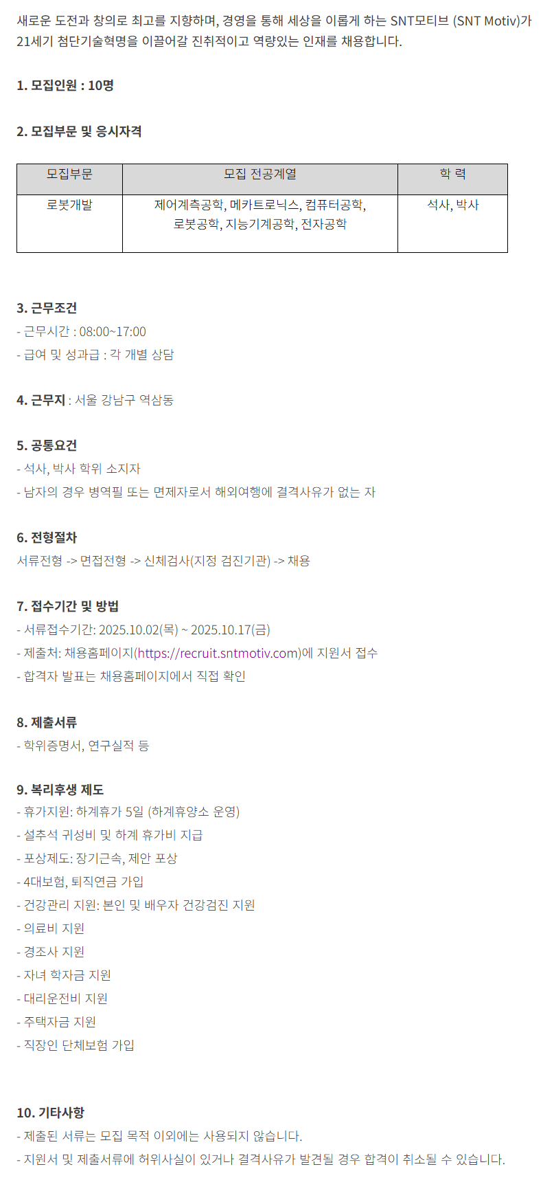- Á¦Ãâó: ä¿ëȨÆäÀÌÁö(https://recruit.sntmotiv.com)¿¡ Áö¿ø¼ Á¢¼ö
