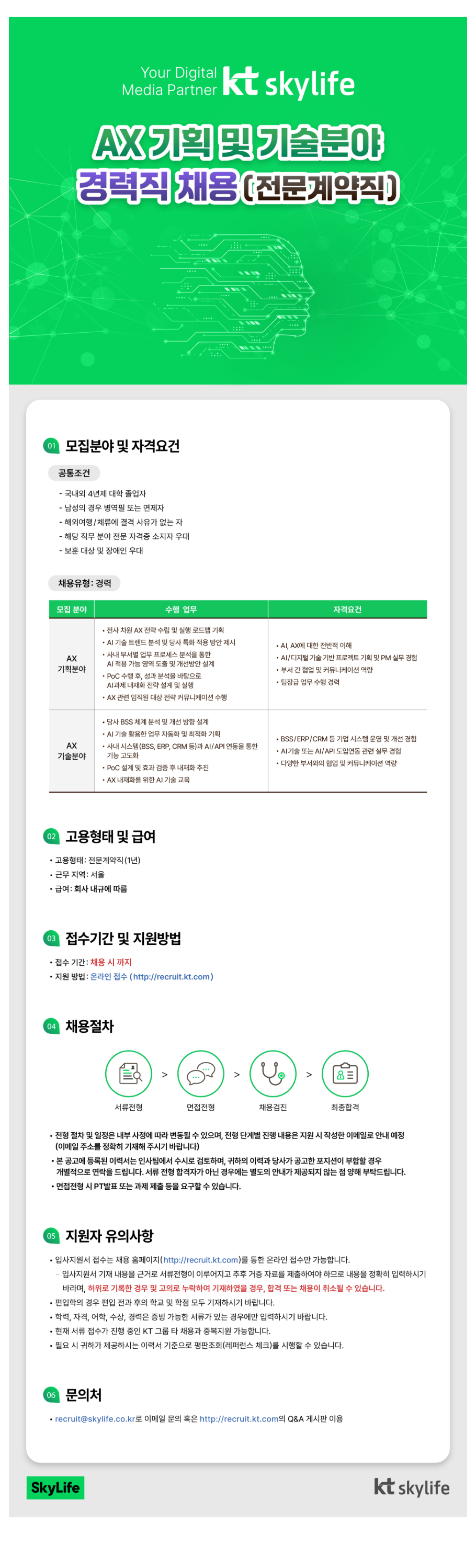 [kt skylife] AX ±âȹ ¹× ±â¼ú ºÐ¾ß °æ·ÂÁ÷ ä¿ë