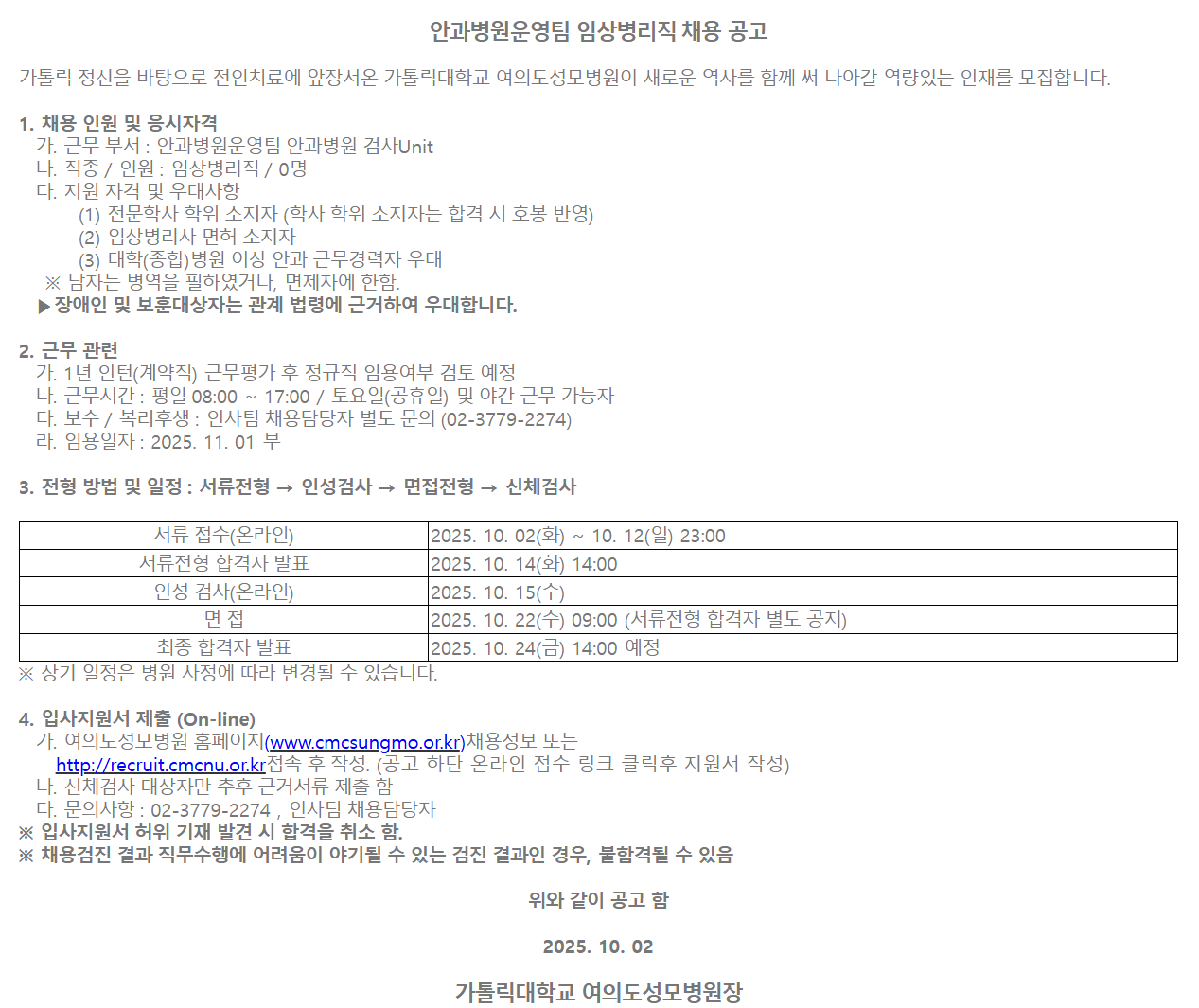 °¡. ¿©Àǵµ¼º¸ðº´¿ø ȨÆäÀÌÁö(www.cmcsungmo.or.kr)ä¿ëÁ¤º¸ ¶Ç´Â