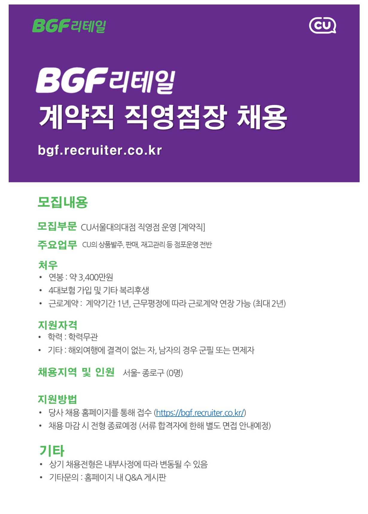 [BGF¸®Å×ÀÏ] 2025³â °è¾àÁ÷ Á÷¿µÁ¡Àå ä¿ë - ¼¿ï´ëÀÇ´ëÁ¡