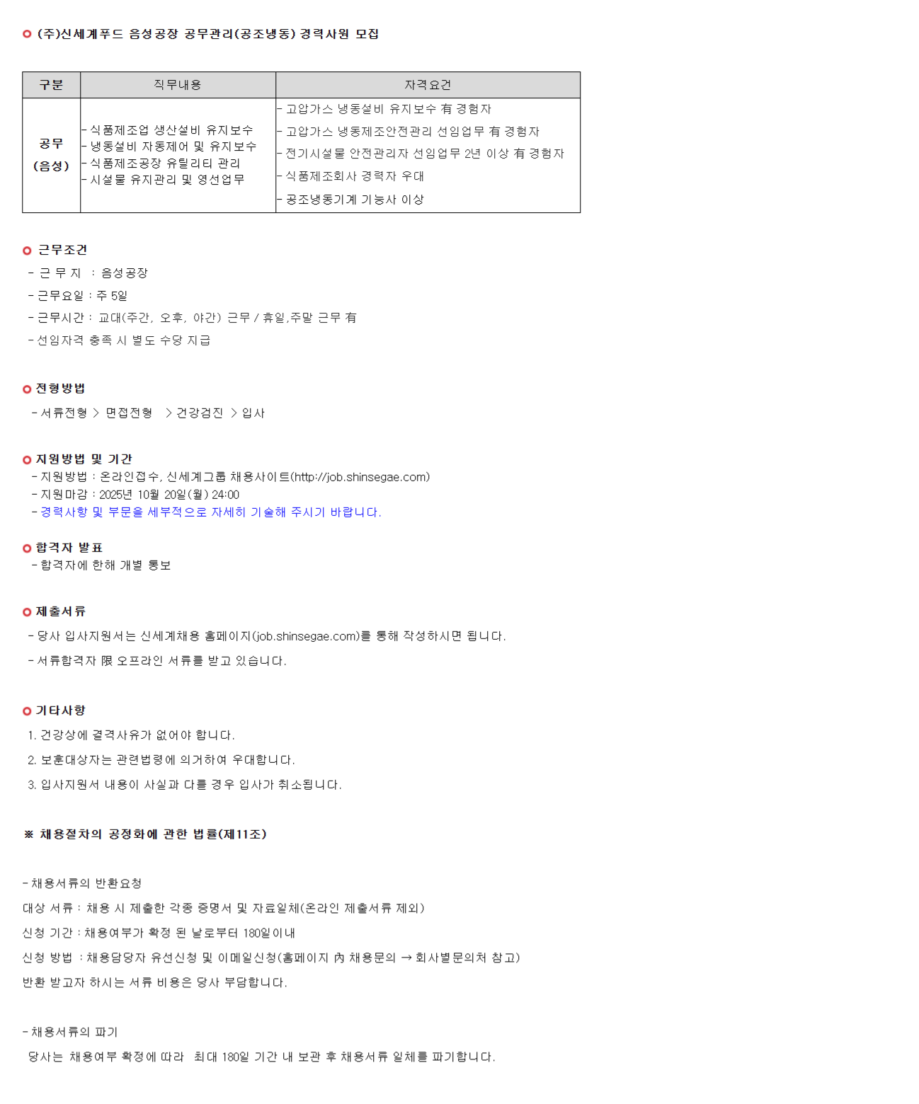 (ÁÖ)½Å¼¼°èǪµå À½¼º°øÀå °ø¹«°ü¸®(°øÁ¶³Ãµ¿) °æ·Â»ç¿ø ¸ðÁý