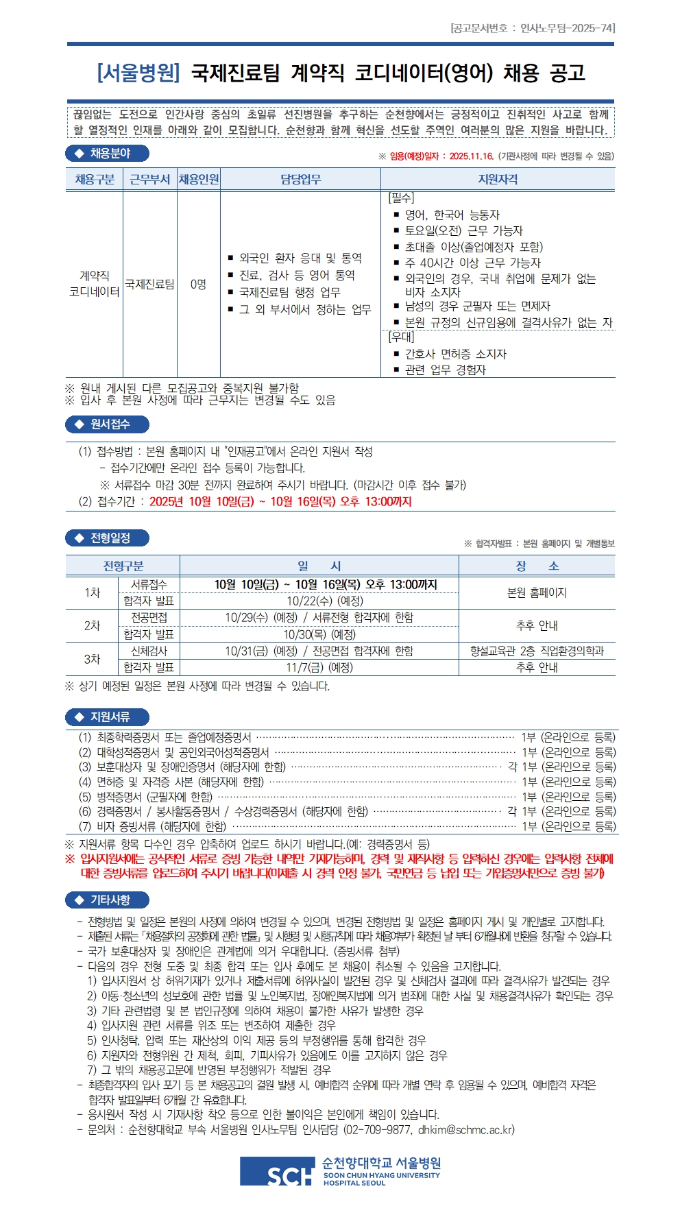 ±¹Á¦Áø·áÆÀ °è¾àÁ÷ ÄÚµð³×ÀÌÅÍ(¿µ¾î) ä¿ë °ø°í