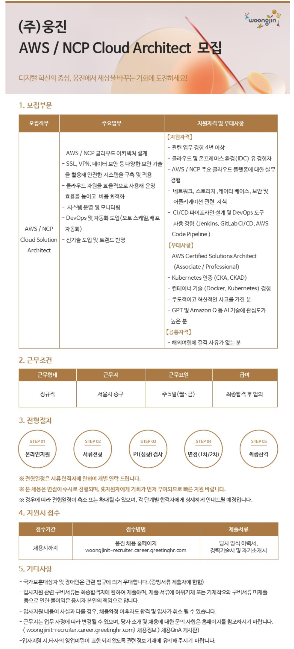 [°æ·Â] AWS / NCP Cloud Architect ¸ðÁý