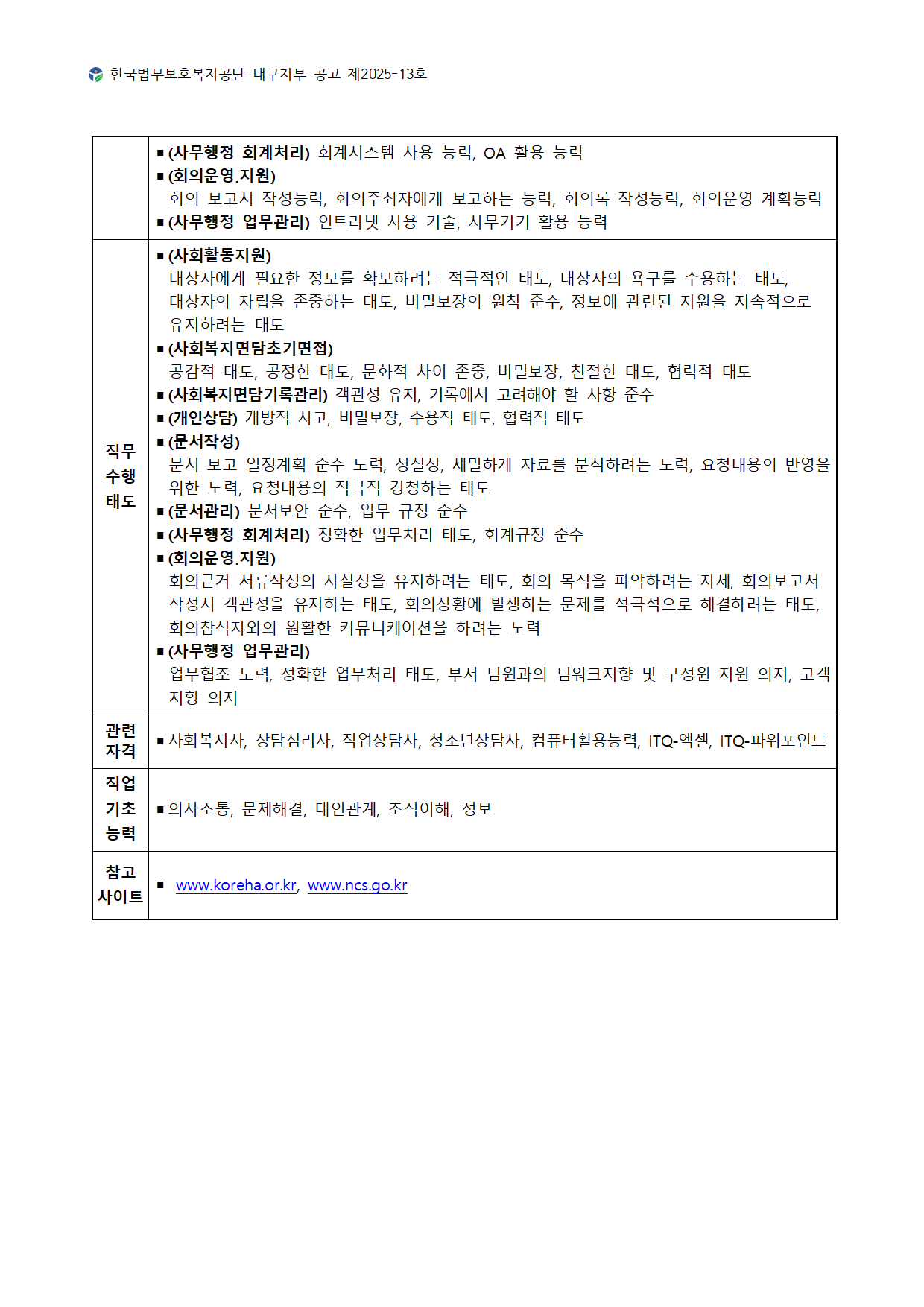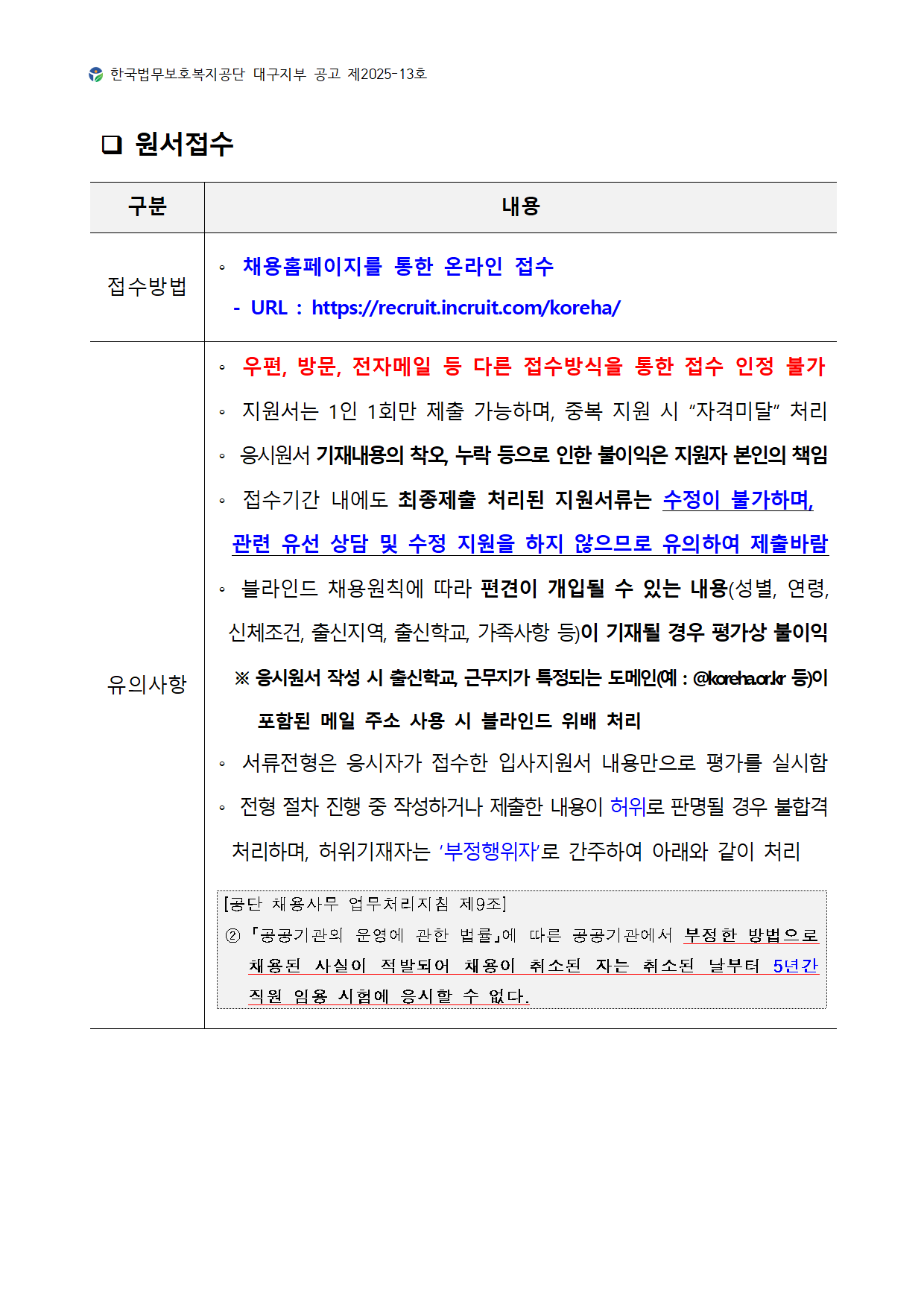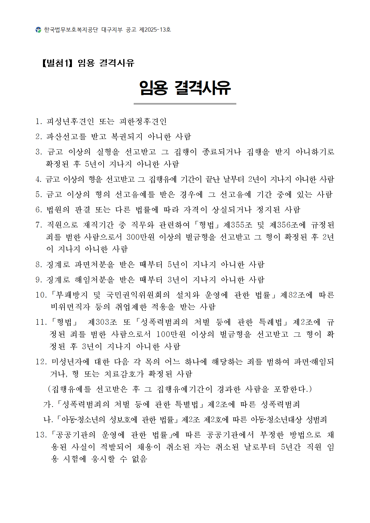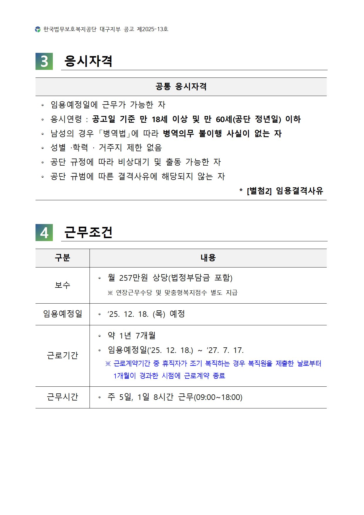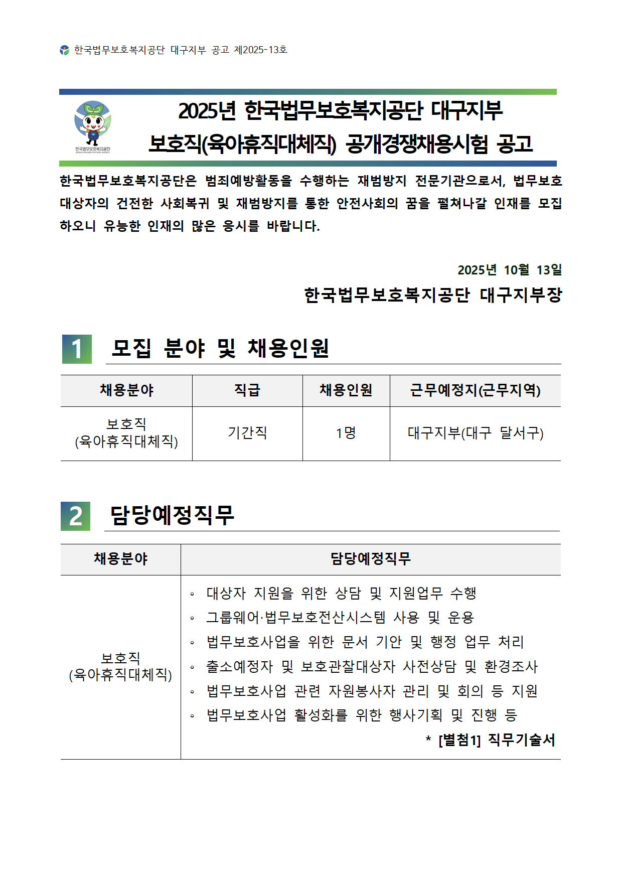 ¸ðÁý ºÐ¾ß ¹× ä¿ëÀοø ä¿ëºÐ¾ß Á÷±Þ ä¿ëÀοø ±Ù¹«¿¹Á¤Áö(±Ù¹«Áö¿ª) º¸È£Á÷ (À°¾ÆÈÞÁ÷´ëüÁ÷) ±â°£Á÷ 1¸í ´ë±¸ÁöºÎ(´ë±¸ ´Þ¼±¸)