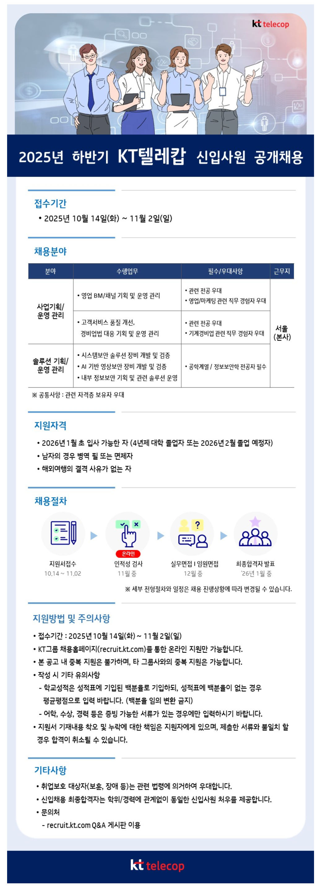 [kt telecop] 2025³â ÇϹݱâ KTÅÚ·¹Ä° ´ëÁ¹ ½ÅÀÔ»ç¿ø °ø°³Ã¤¿ë