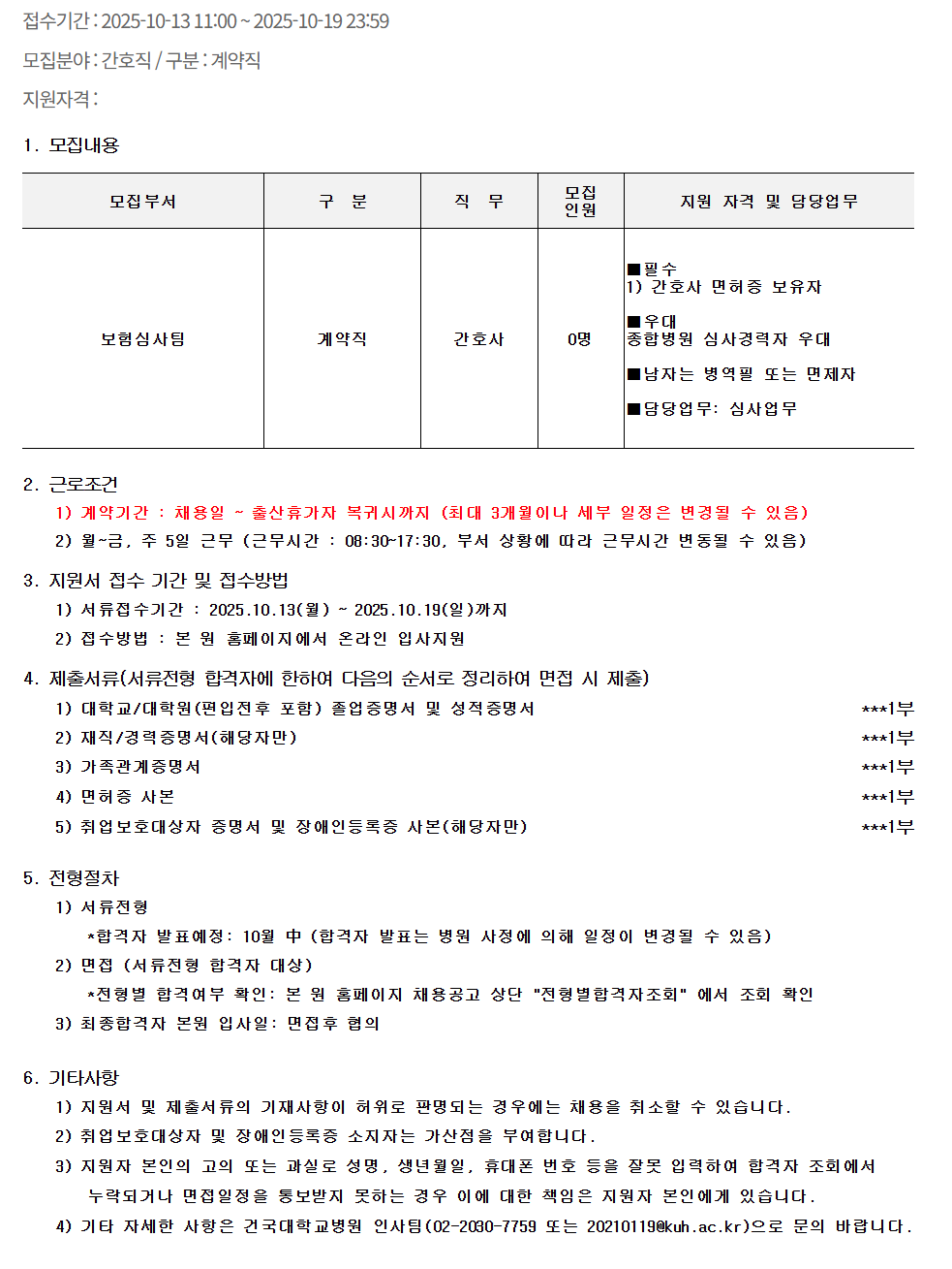 º¸Çè½É»çÆÀ °è¾àÁ÷ °£È£»ç 0¸í ¡áÇʼö