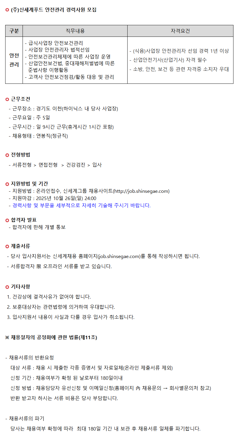 (ÁÖ)½Å¼¼°èǪµå ¾ÈÀü°ü¸® °æ·Â»ç¿ø ¸ðÁý