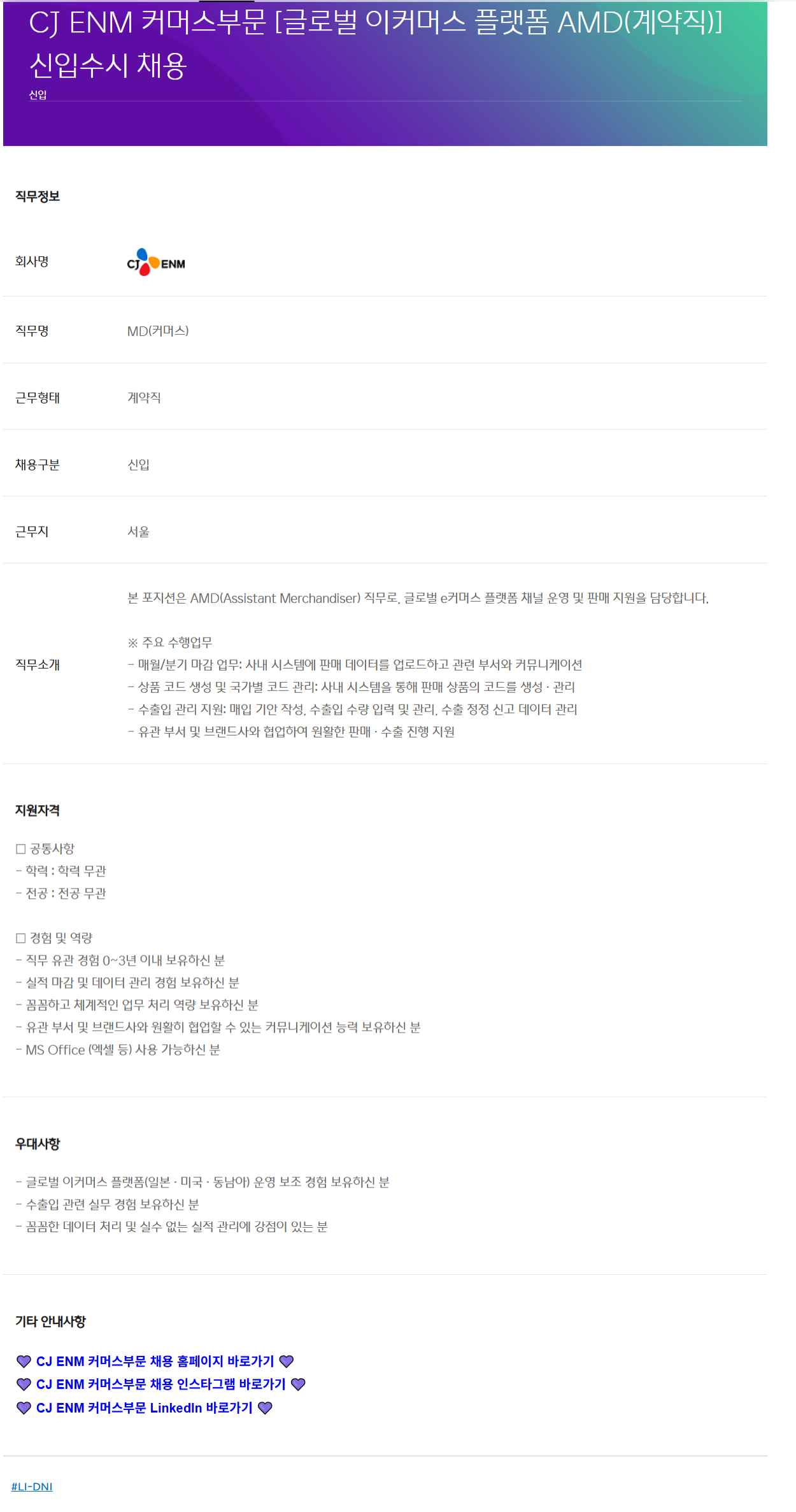 CJ ENM Ä¿¸Ó½ººÎ¹® [±Û·Î¹ú ÀÌÄ¿¸Ó½º Ç÷§Æû AMD(°è¾àÁ÷)] ½ÅÀÔ¼ö½Ã ä¿ë
