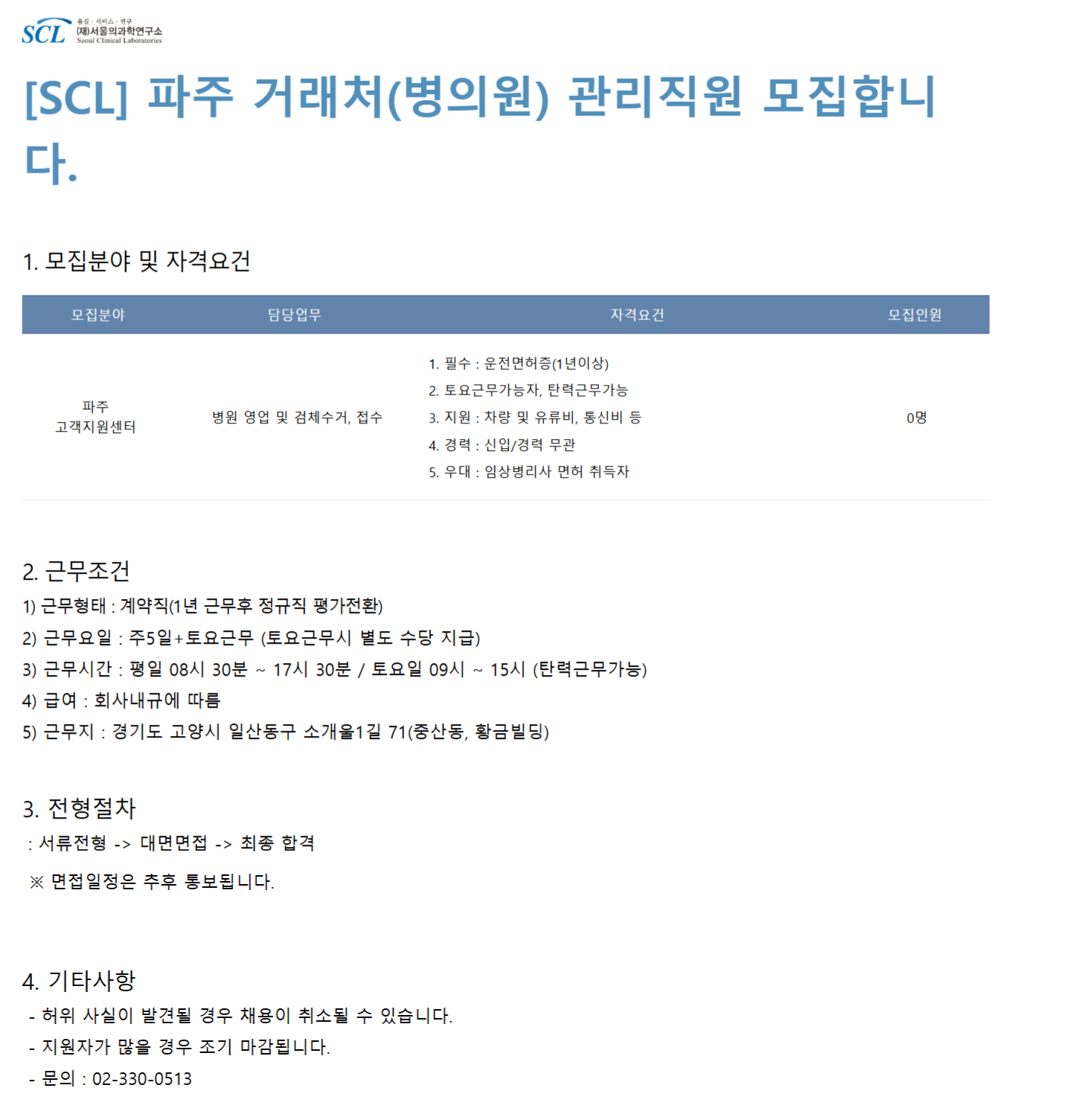 [SCL] ÆÄÁÖ °Å·¡Ã³(º´ÀÇ¿ø) °ü¸®Á÷¿ø ¸ðÁýÇÕ´Ï´Ù.