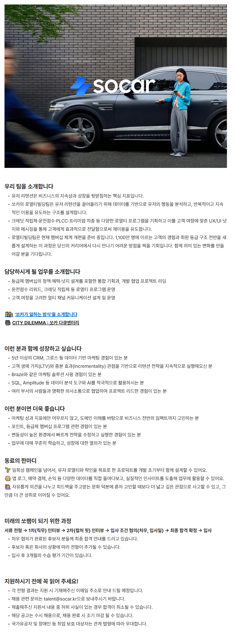 Å©·¹µ÷ Àû¸³Á¦¡¤¿îÀüÁ¡¼ö¡¤PLCC¡¤ÇÁ¸®¹Ì¾ö Â÷Á¾ µî ´Ù¾çÇÑ ·Î¿Æ¼ ÇÁ·Î±×·¥À» ±âȹÇϰí À̸¦ °í°´ ¿©Á¤¿¡ ¸ÂÃá UX/UI ³ÓÁö¿Í ¸Þ½Ã¡À» ÅëÇØ °í°´¿¡°Ô È¿°úÀûÀ¸·Î Àü´ÞÇÔÀ¸·Î½á ÀçÀÌ¿ëÀ» À¯µµÇÕ´Ï´Ù.